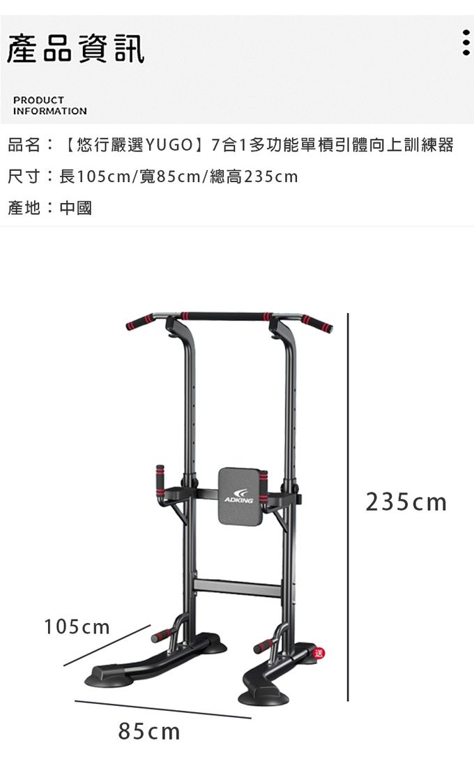 品名:7合1多功能單槓雙槓 家用引體向上訓練器 黑色
