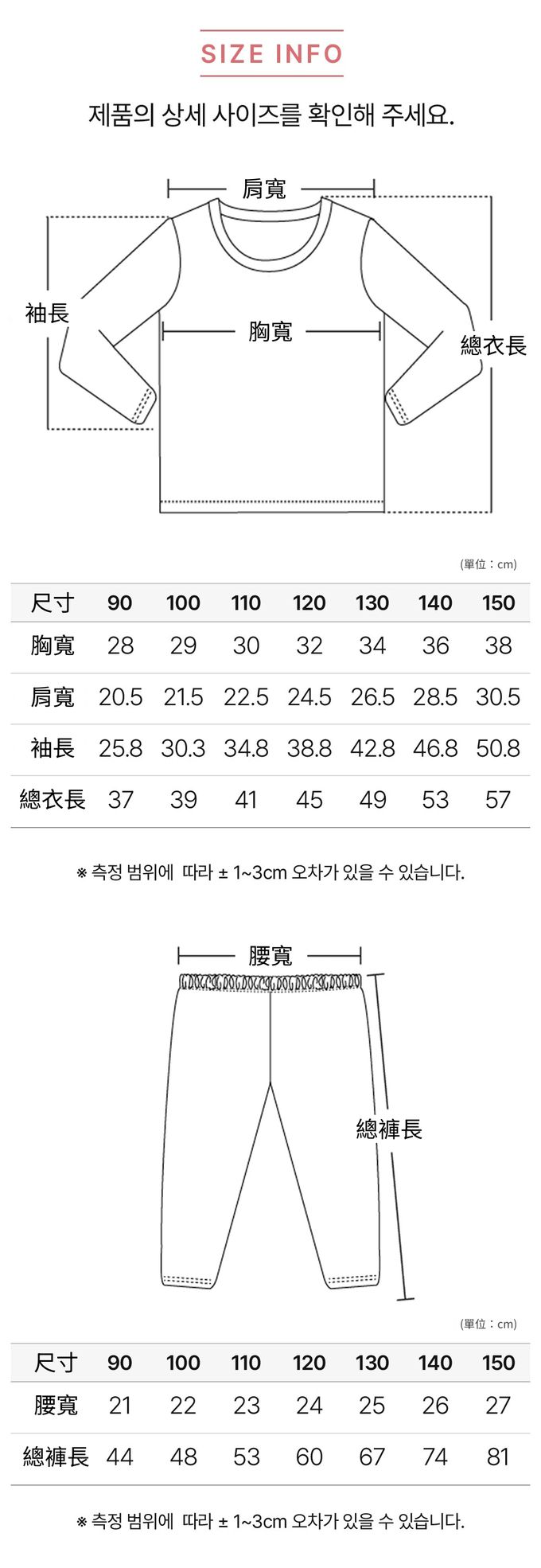 1. 尺寸表單位皆為公分(cm),實際尺寸會因布料彈性、水洗、測量起迄點等因素略有誤差。