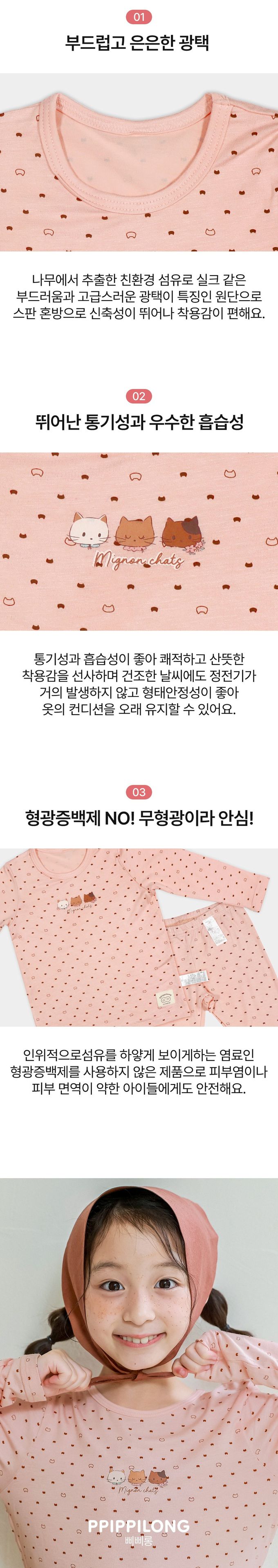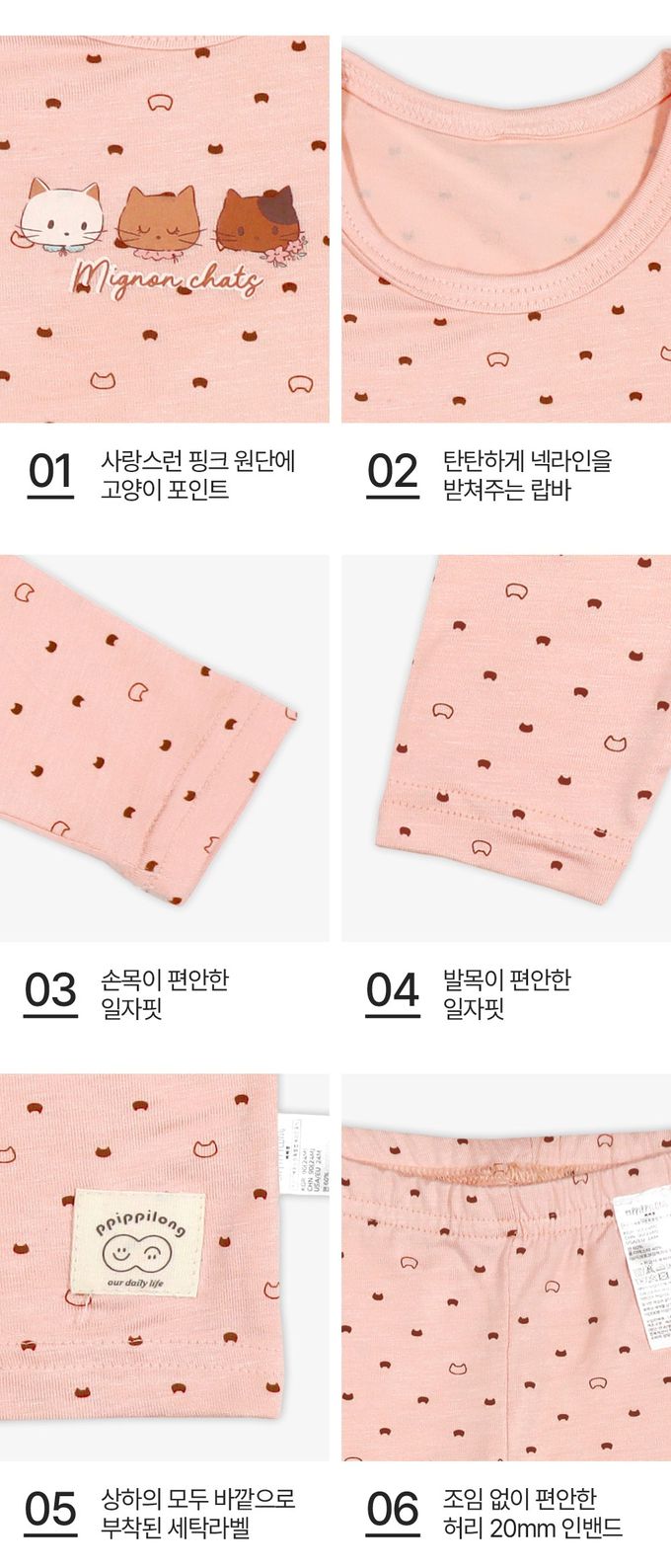 韓國 Ppippilong - 莫代爾親膚絲滑長袖家居服-可愛貓咪-珊瑚粉橘