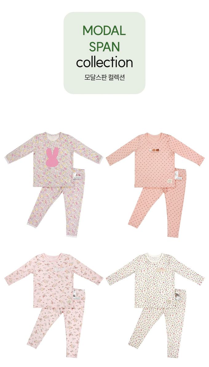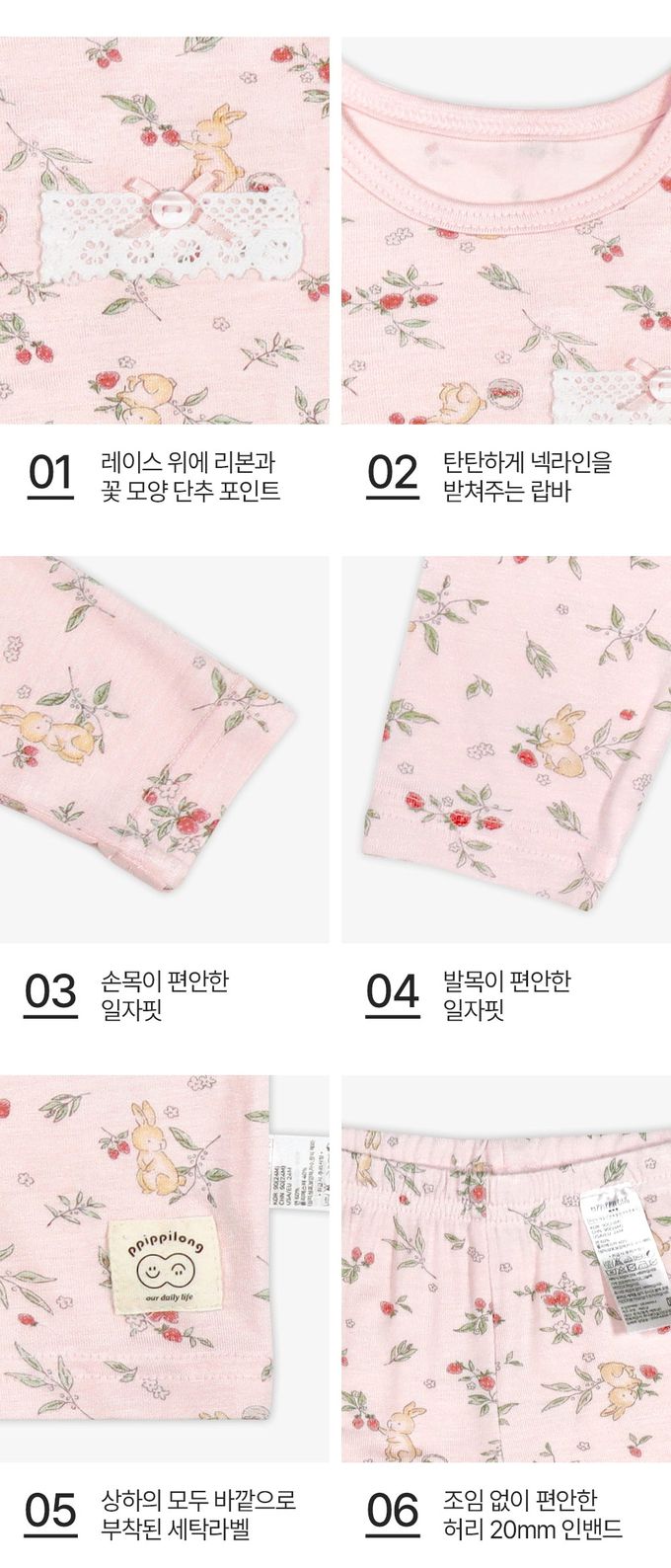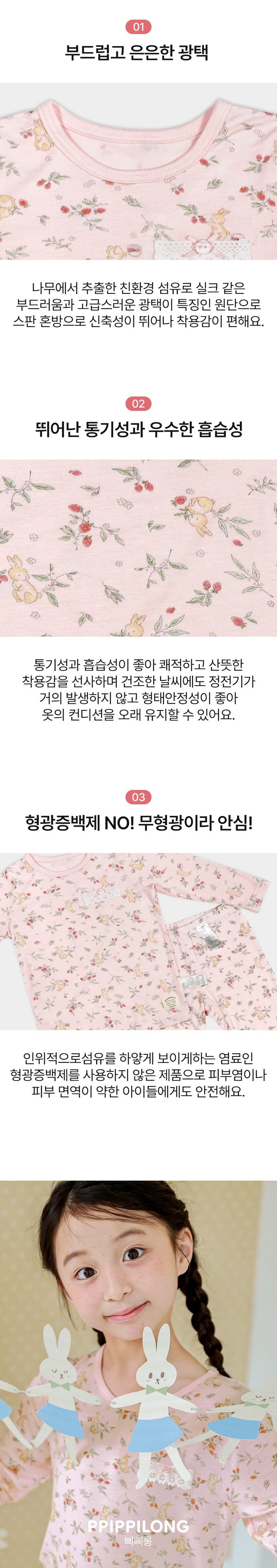 韓國 Ppippilong - 莫代爾親膚絲滑長袖家居服-莓果兔子-淡粉