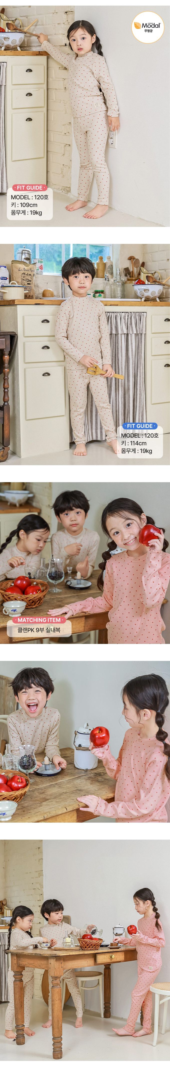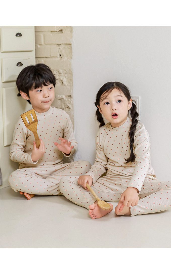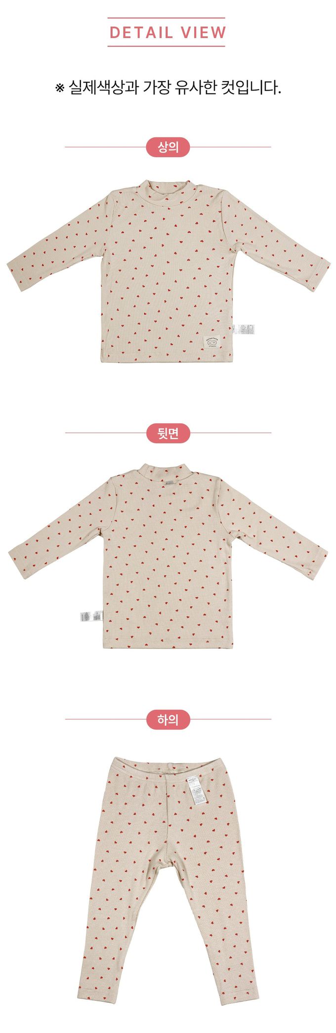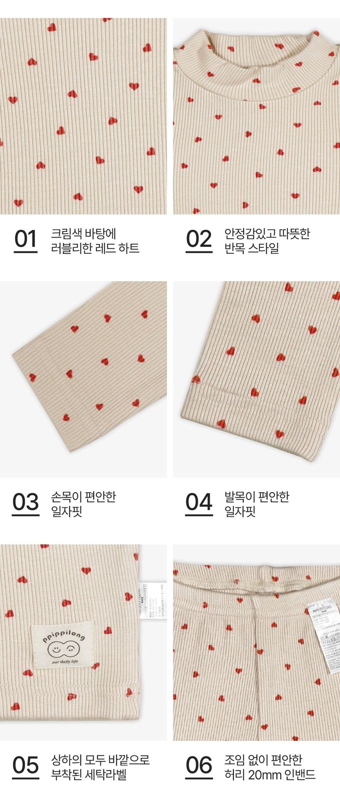 韓國 Ppippilong - 莫代爾親膚羅紋彈力微厚長袖家居服-紅心-米