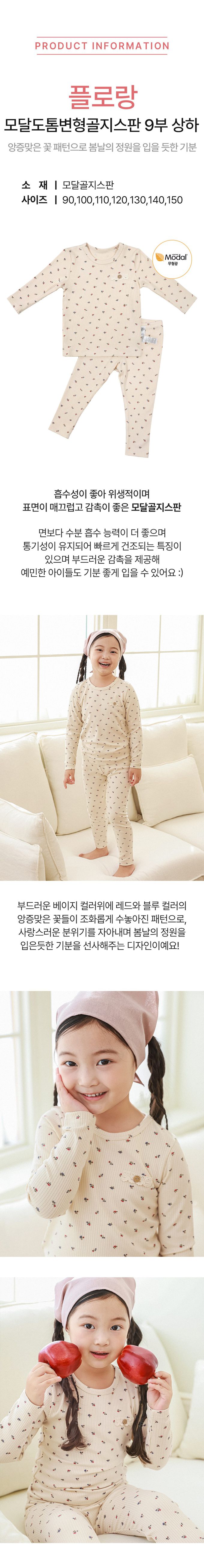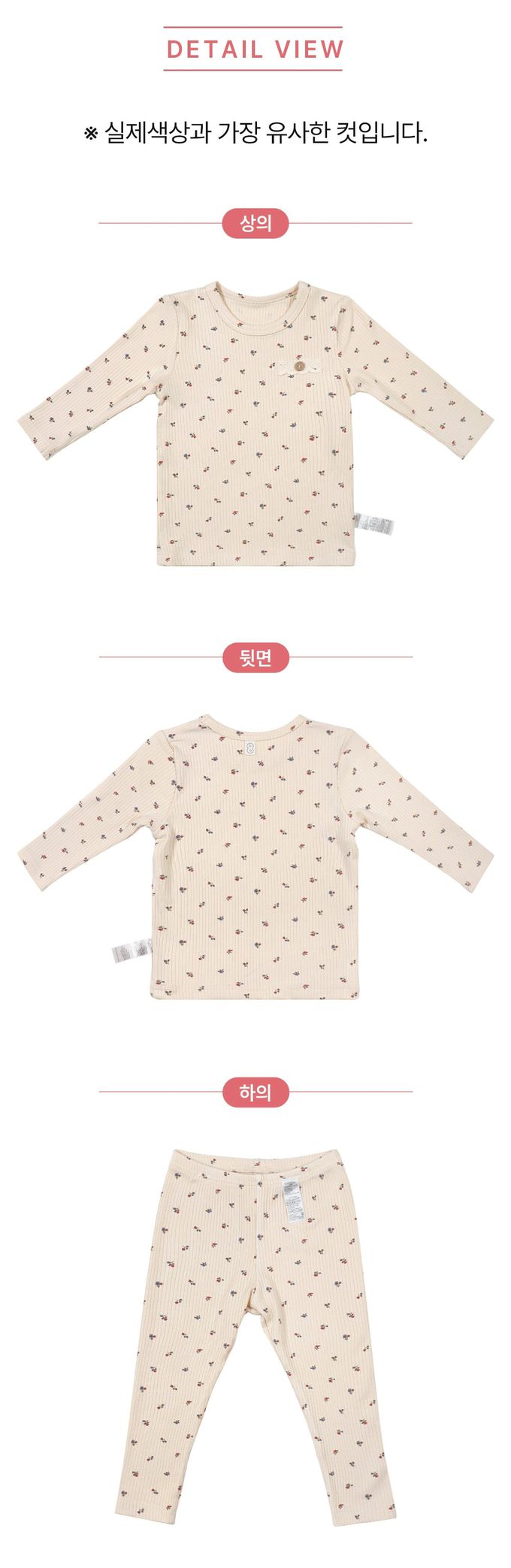 韓國 Ppippilong - 莫代爾親膚坑條羅紋彈力微厚長袖家居服-小花-米