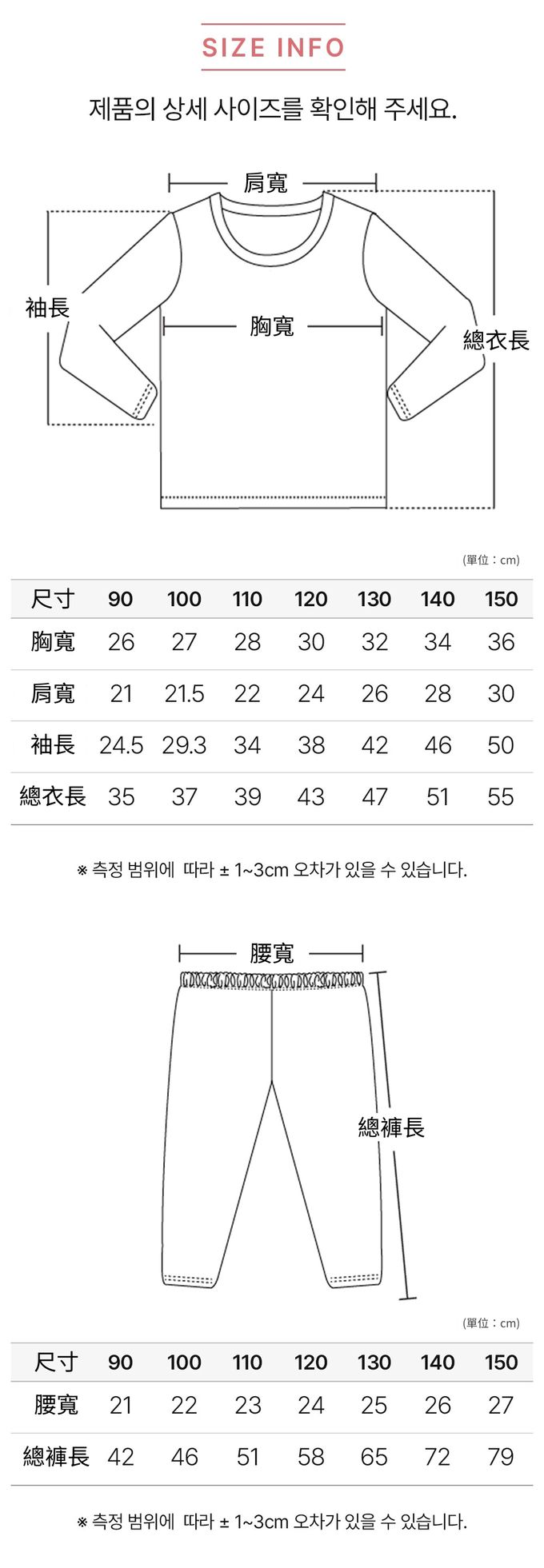 1. 尺寸表單位皆為公分(cm),實際尺寸會因布料彈性、水洗、測量起迄點等因素略有誤差。