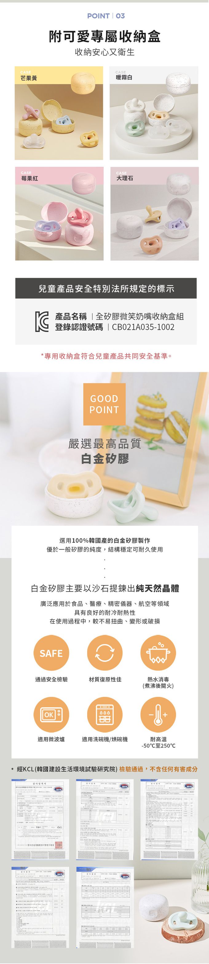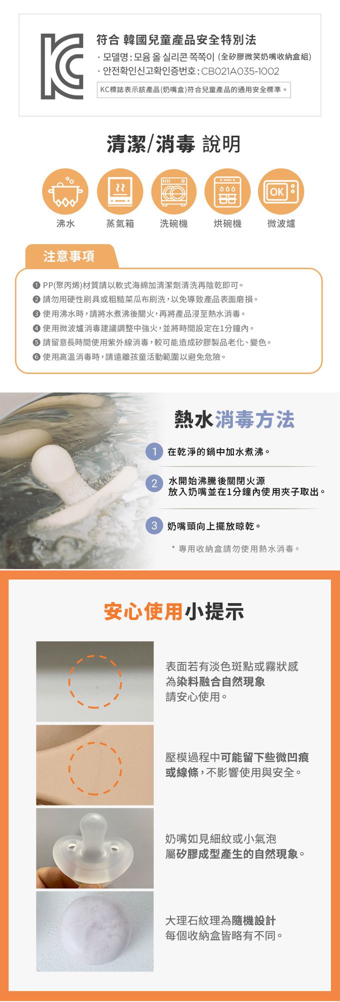 -材質:奶嘴(矽膠-50°C~250°C)、奶嘴盒(PP-20°C~110°C)