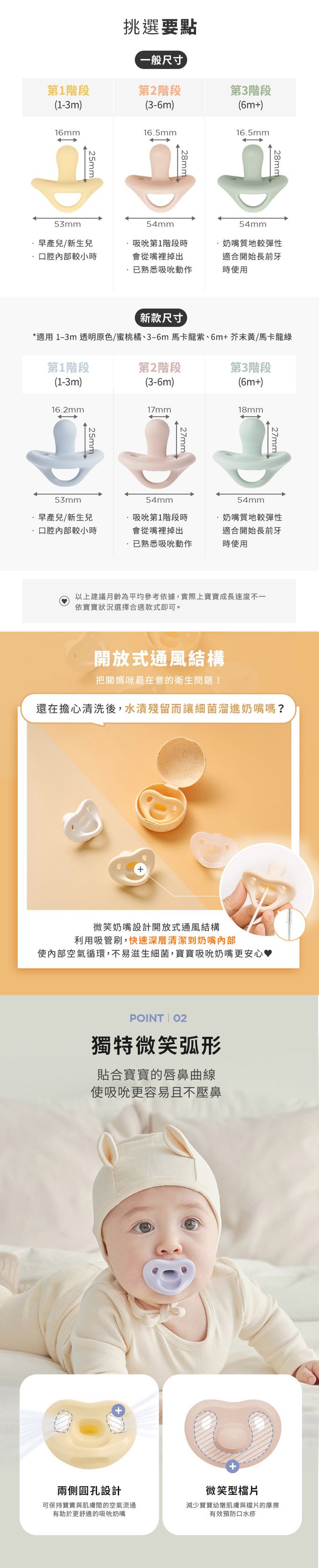 .扁平型奶嘴設計:三階段變化貼合寶寶口慾發展!