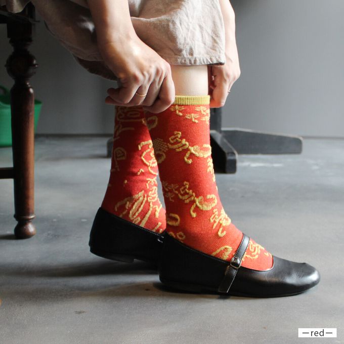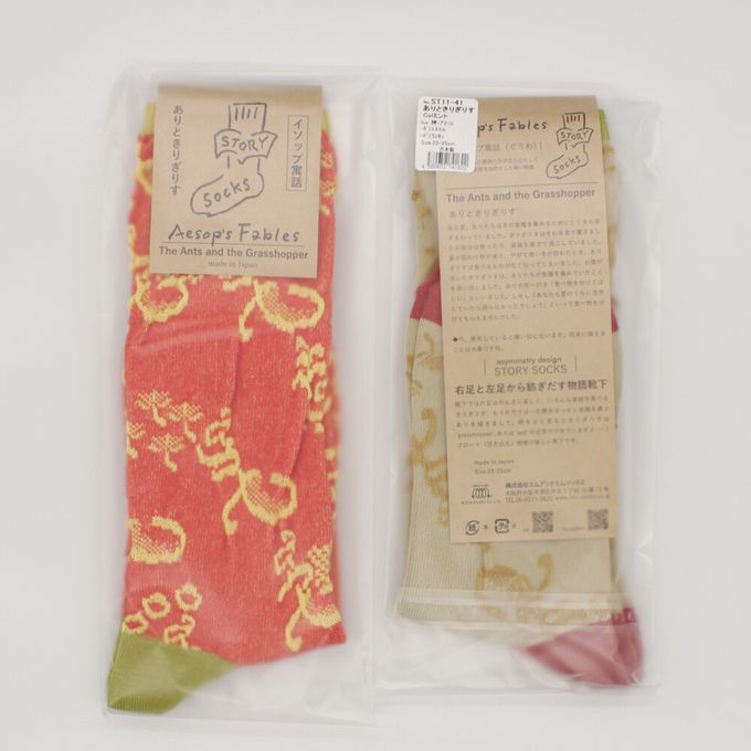 日本女裝代購 - 日本製 伊索寓言印花長襪-螞蟻與蟋蟀-橘紅 (23-25cm)