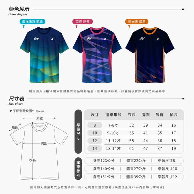 獨家設計款透氣排汗衣-兒童/短袖-海洋律浪/藍綠
