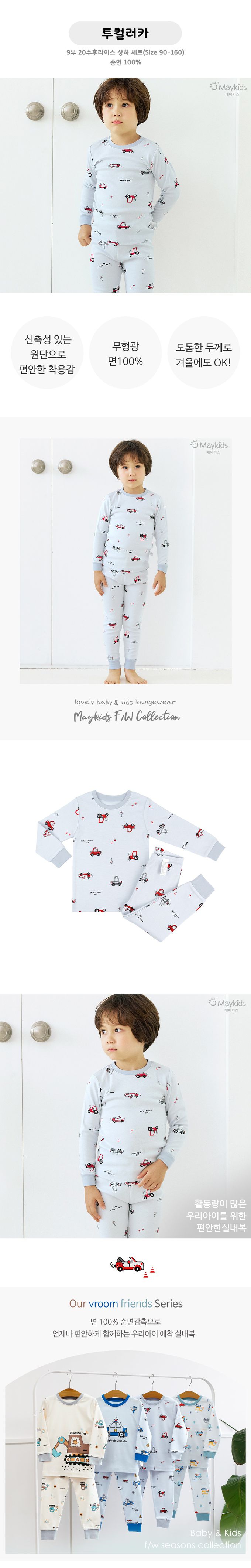 韓國 Maykids - 親膚舒絨棉彈性長袖家居服-紅色交通工具