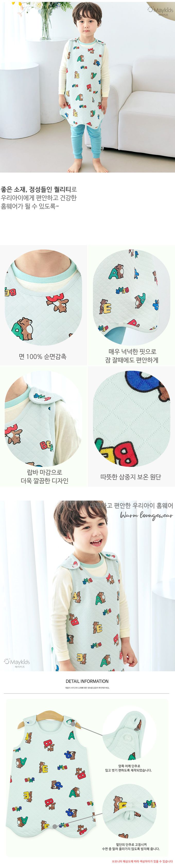 韓國 Maykids - 保暖三層絎縫棉防踢被-熊熊字母-水藍