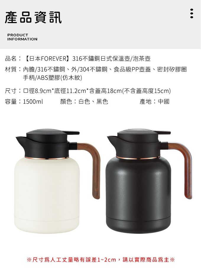 品名:316不鏽鋼日系保溫壺/泡茶壺1500ml