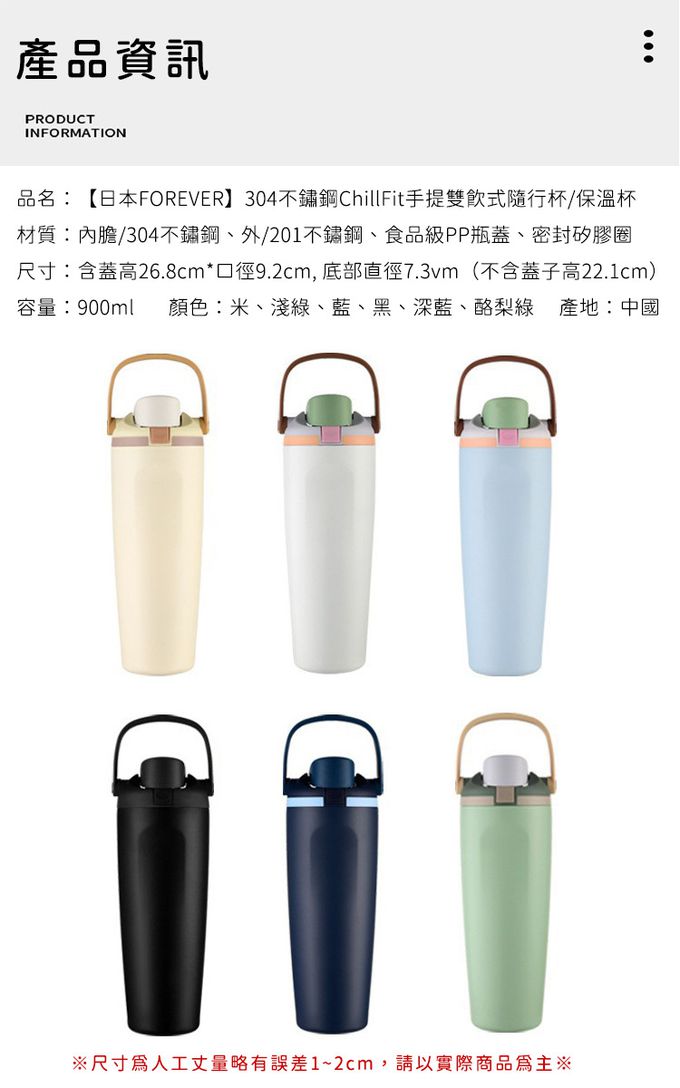 品名:304不鏽鋼ChillFit手提雙飲式隨行杯/保溫杯900ml-2入