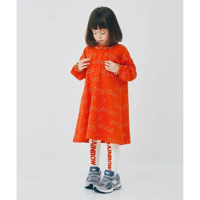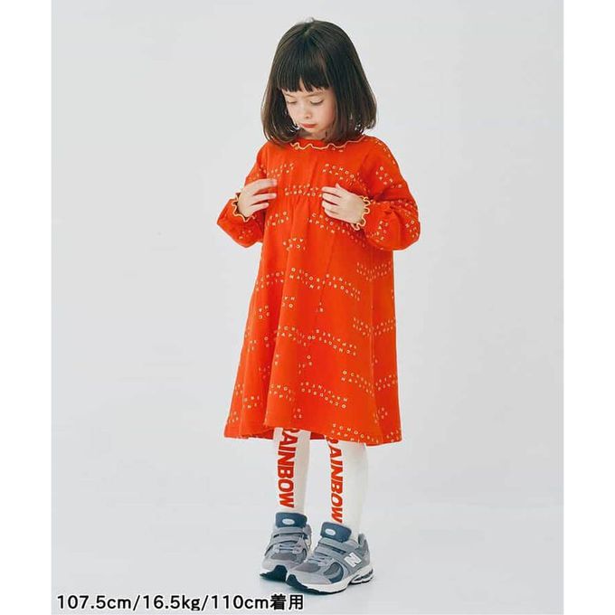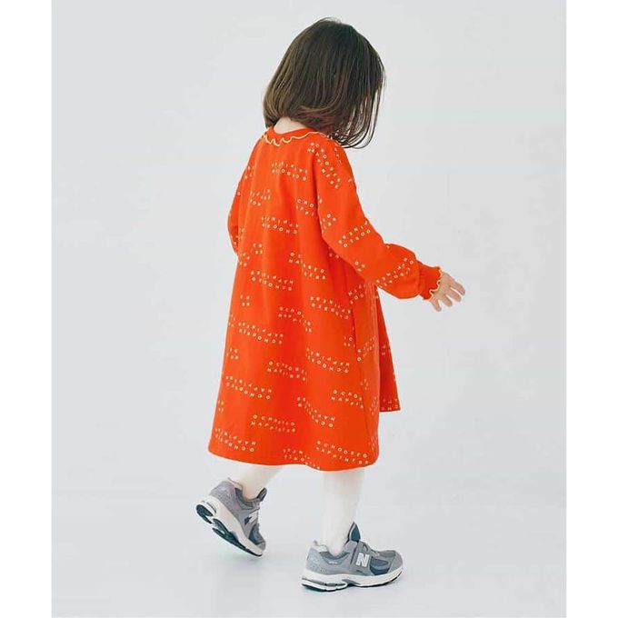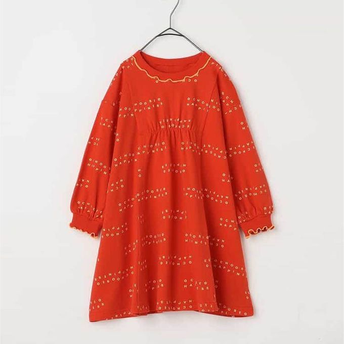 日本 p.premier - 100%棉 可愛復古印花木耳領長袖洋裝-英文LOGO-紅