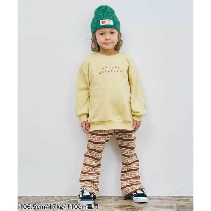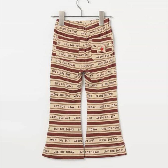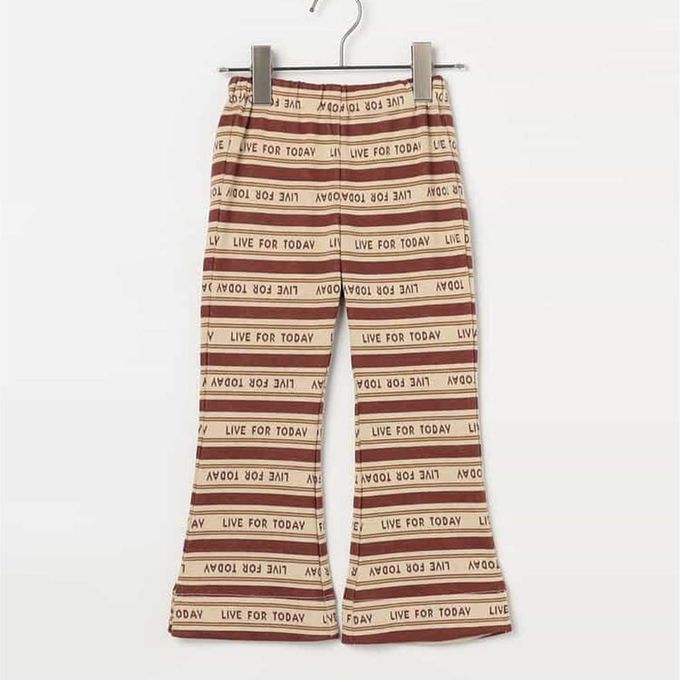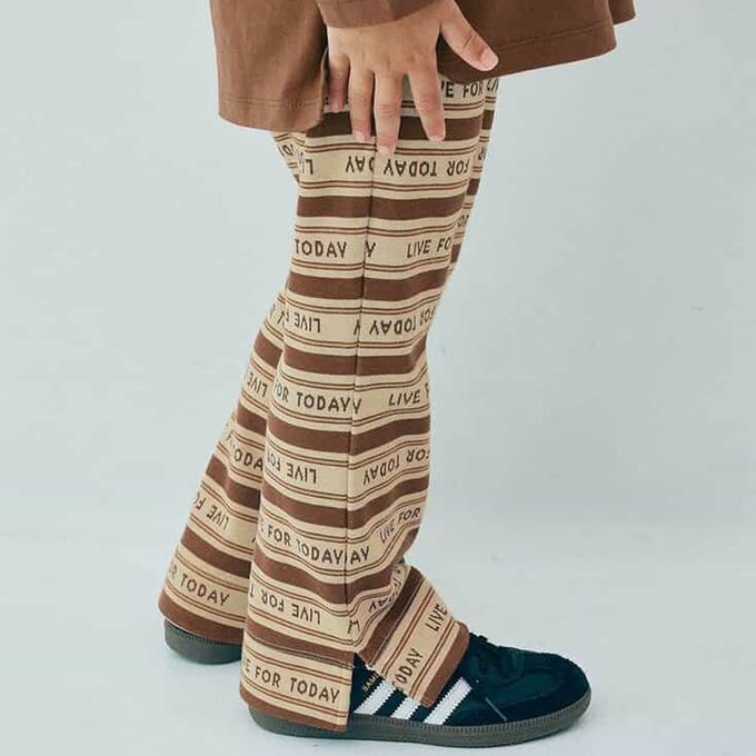 日本 p.premier - 舒適側開岔設計印花喇叭長褲-英文LOGO-棕X白