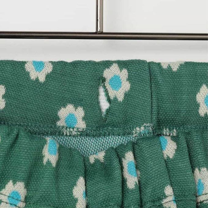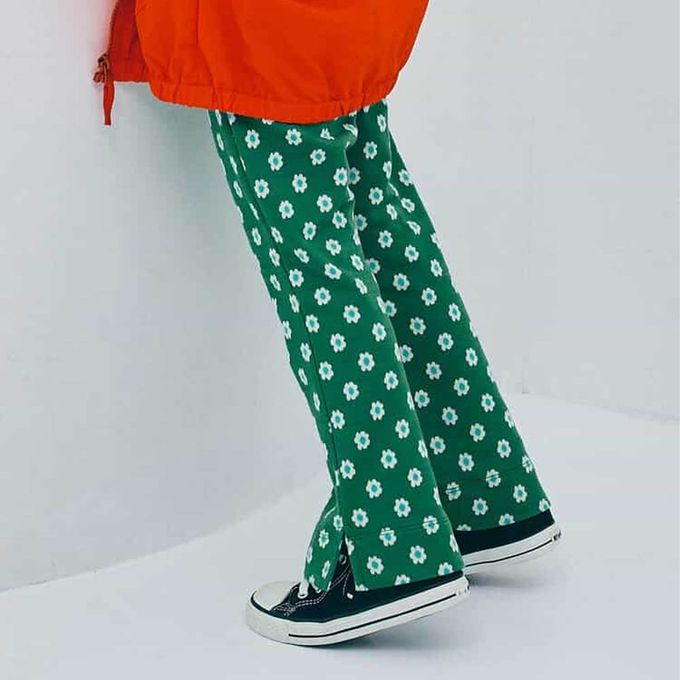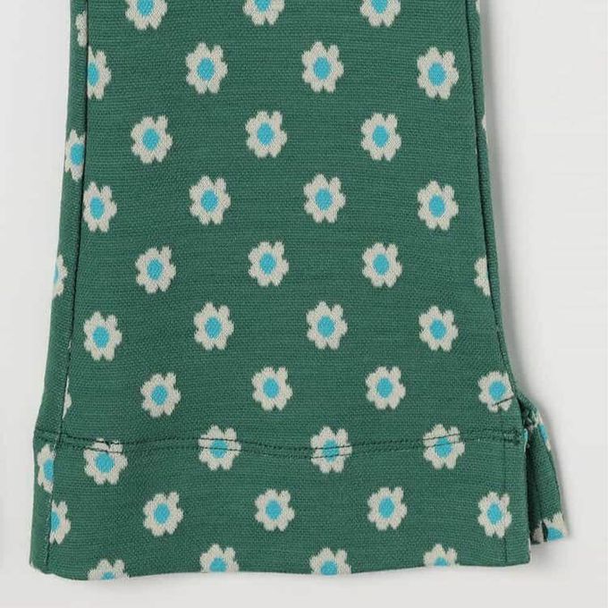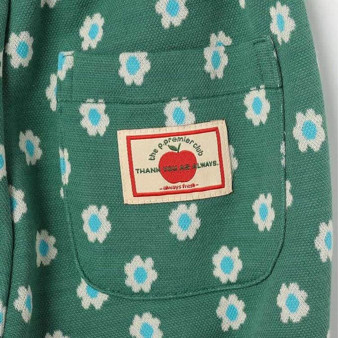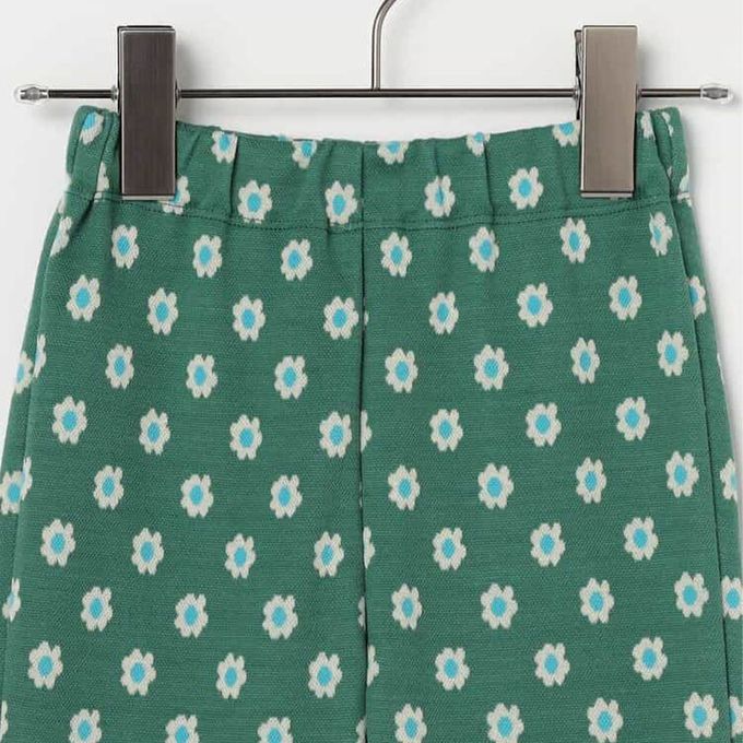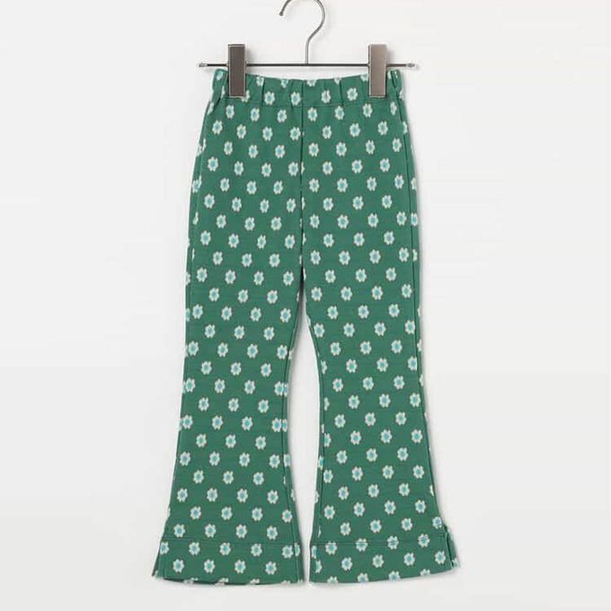 日本 p.premier - 舒適側開岔設計印花喇叭長褲-小花-綠