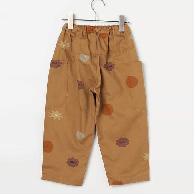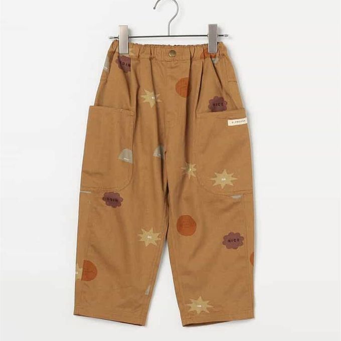 日本 p.premier - 繽紛感印花斜紋布寬褲-幾何-卡其棕