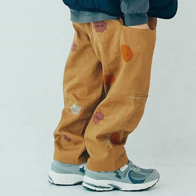 • 品名:繽紛感印花斜紋布寬褲