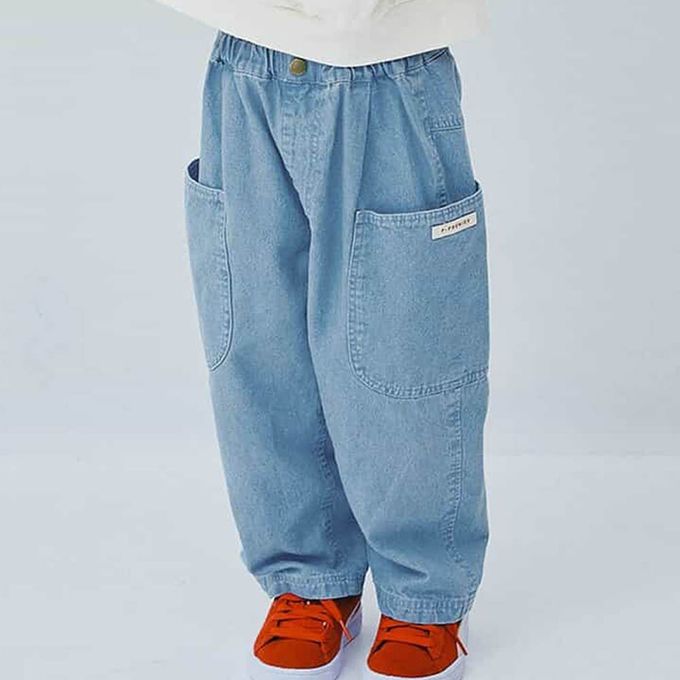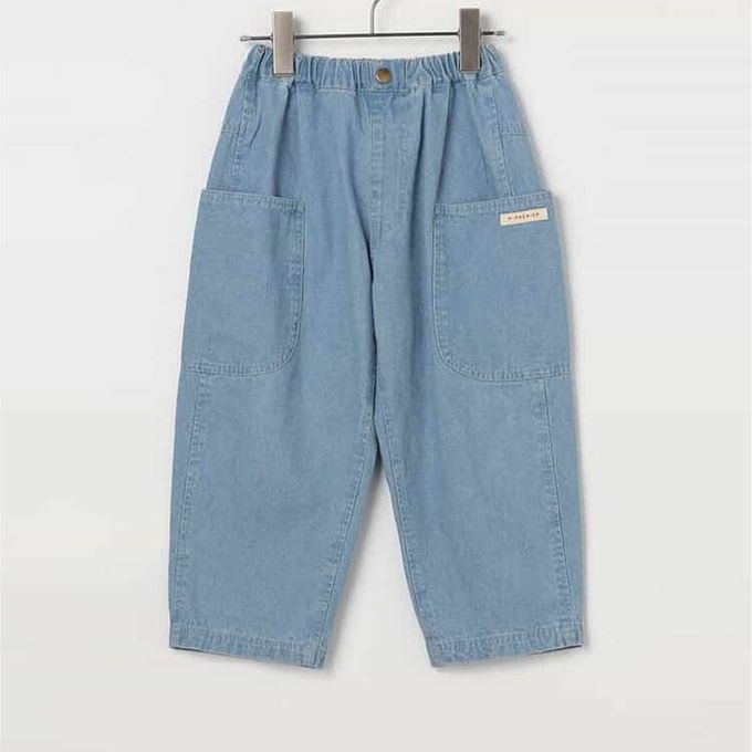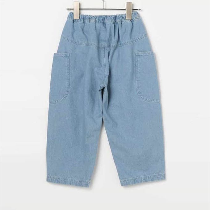 日本 p.premier - 繽紛感印花斜紋布寬褲-素面-丹寧藍