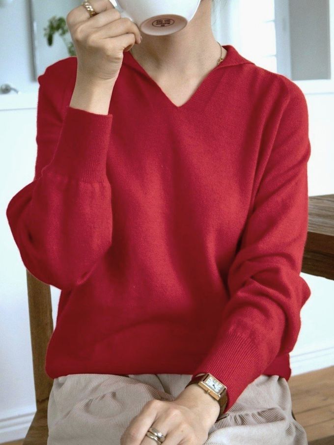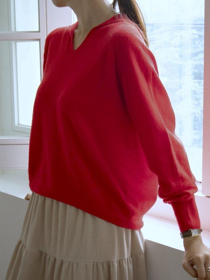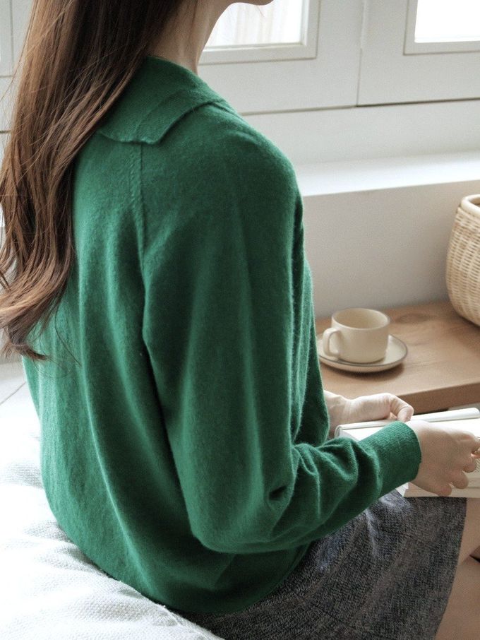 • 品名:柔軟美麗諾羊毛無縫V字翻領長袖針織上衣