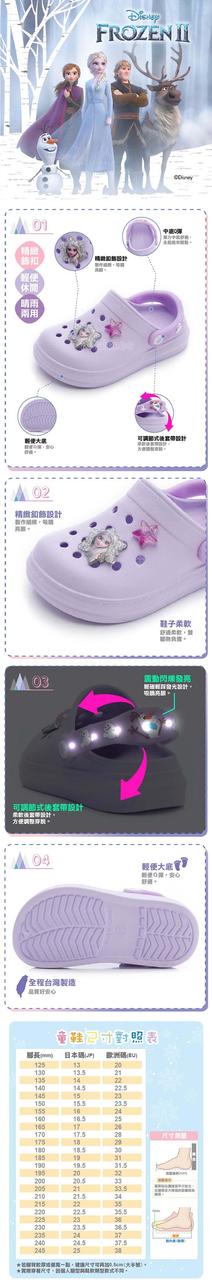 冰雪奇緣 童鞋 電燈洞洞鞋/拖鞋 FNKG51417-輕量防水穿脫方便-紫-(中童段)