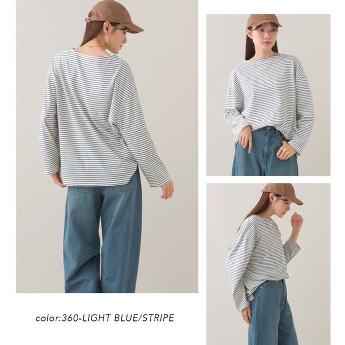 日本 OMNES - 100%棉 經典款細條紋長袖上衣-黑底白條紋