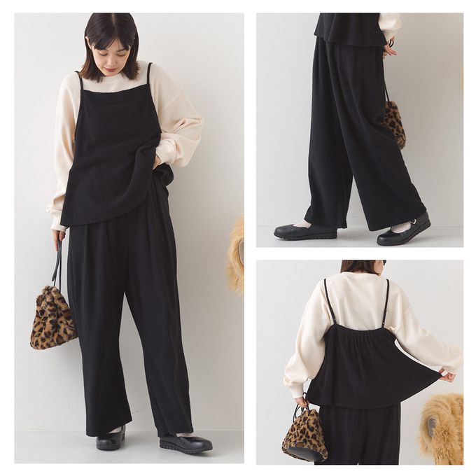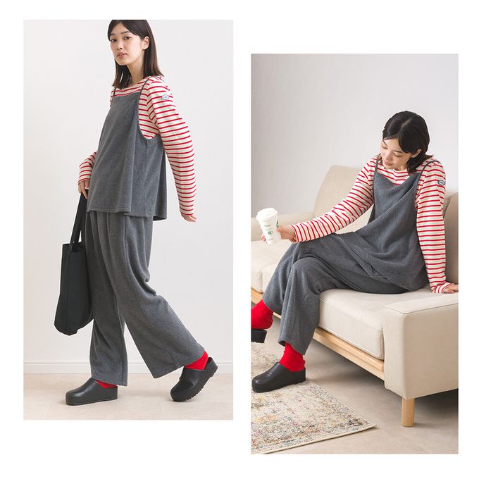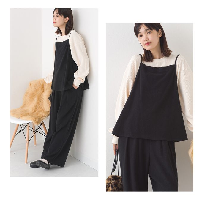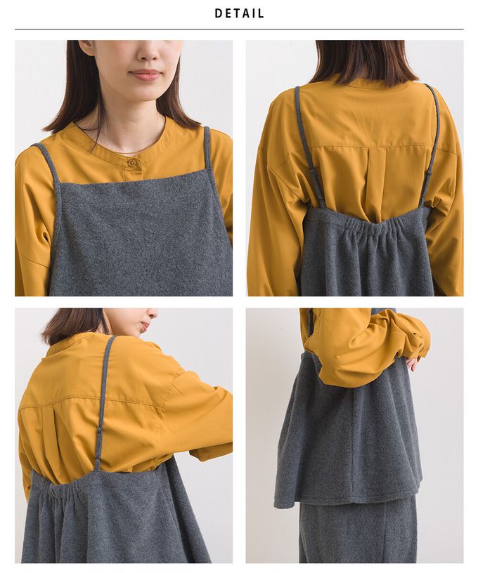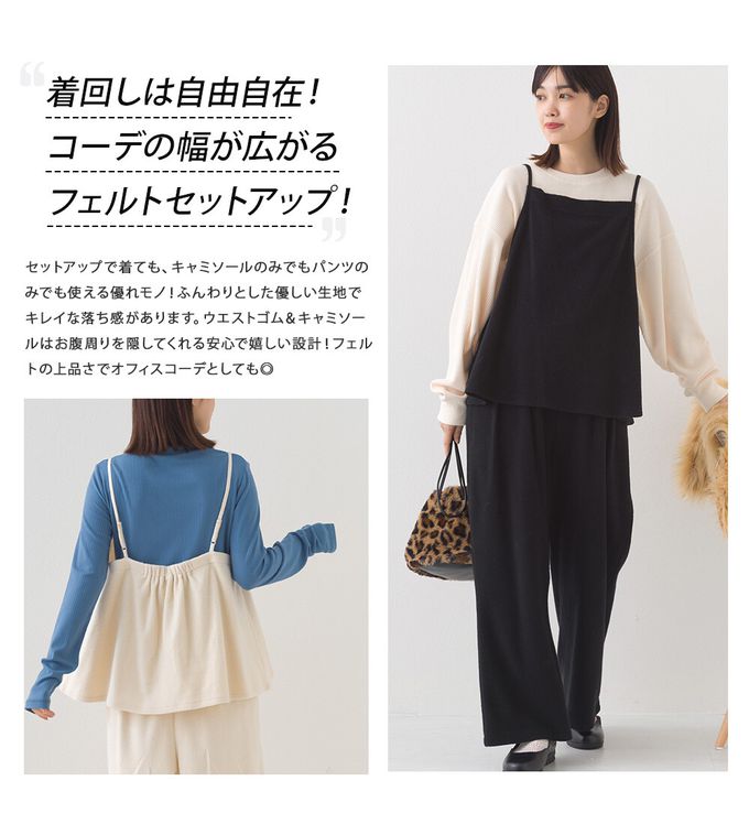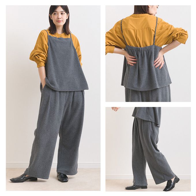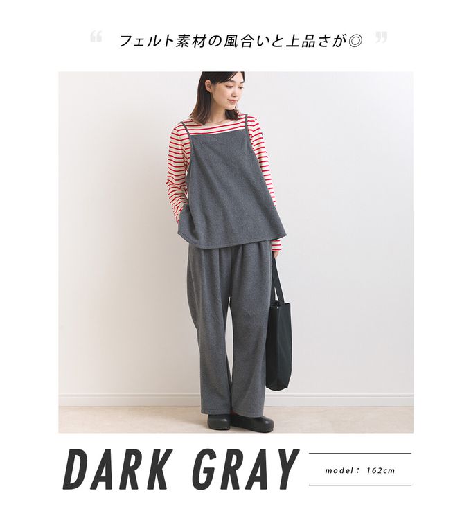 日本 OMNES - 溫柔百搭毛氈感細肩帶2件式套裝-深灰
