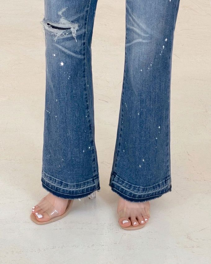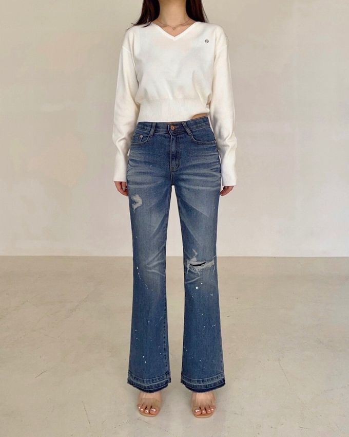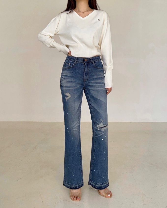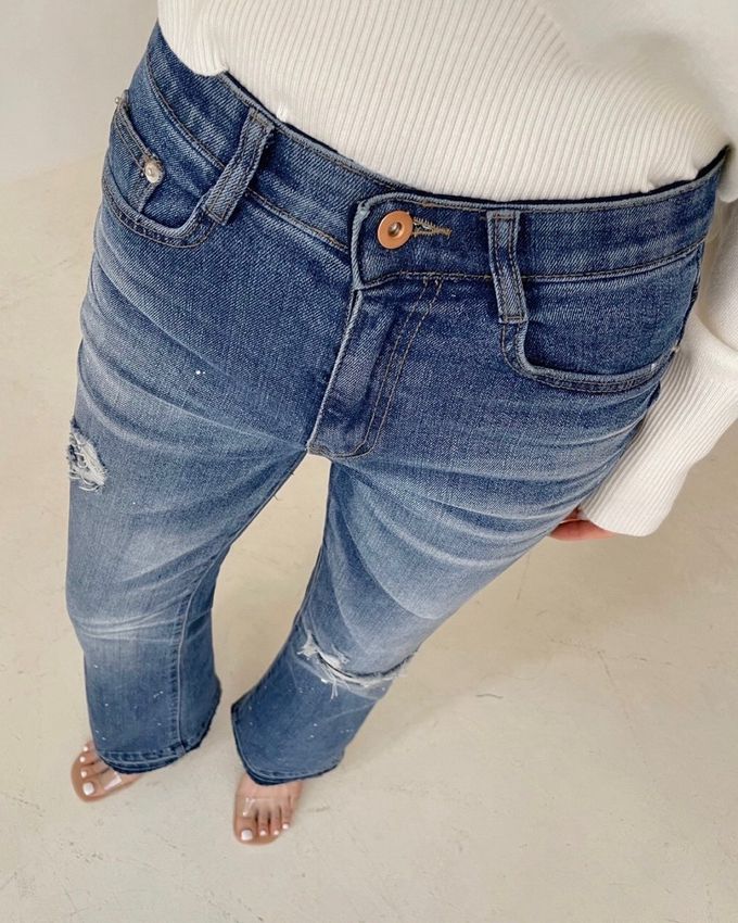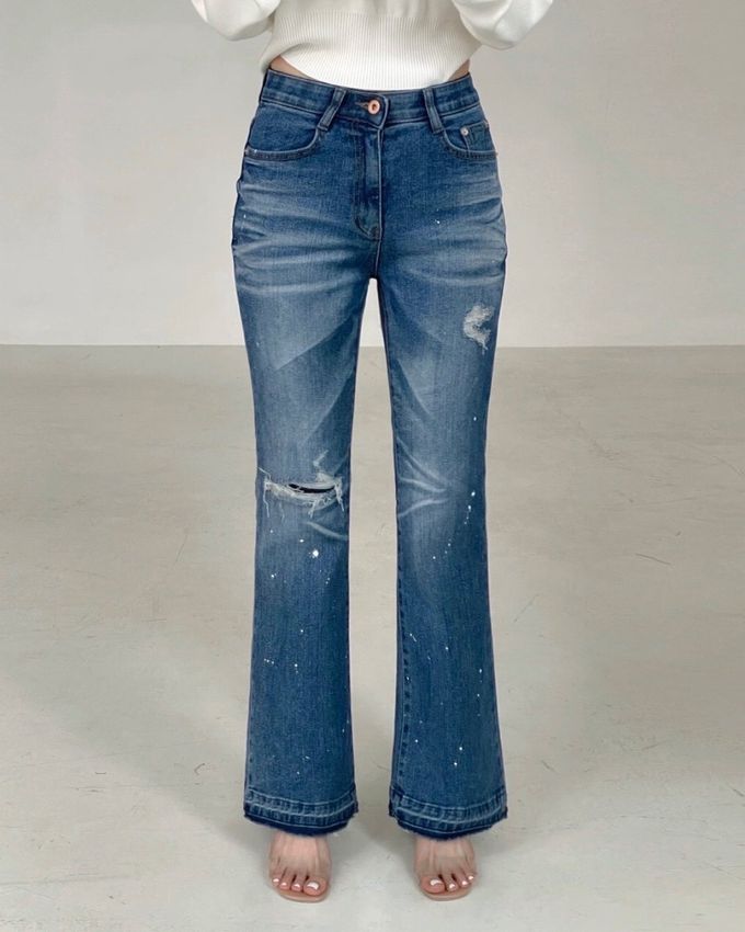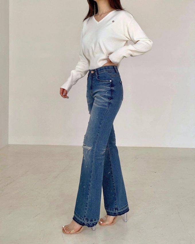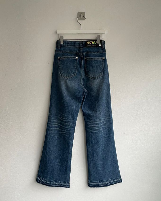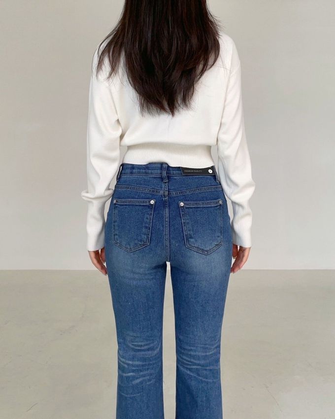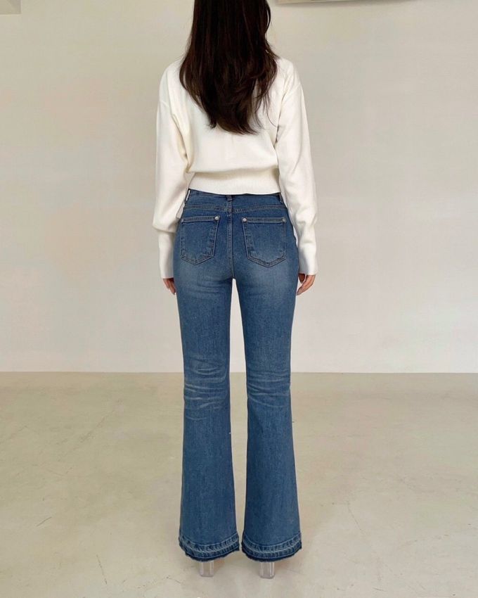 • 品名:彈性腰嚴選高質感仿舊風丹寧喇叭褲