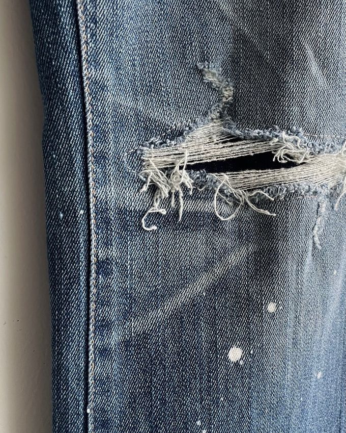 整體採用水洗與開放式破損設計,並以補丁作為亮點,營造濃厚的復古氛圍。