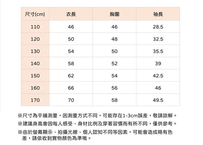 110cm、120cm、130cm、140cm、150cm、160cm、170cm