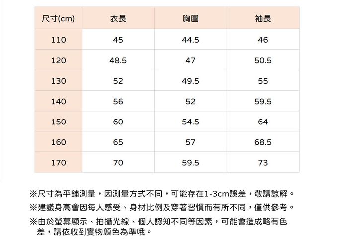 110cm、120cm、130cm、140cm、150cm、160cm、170cm