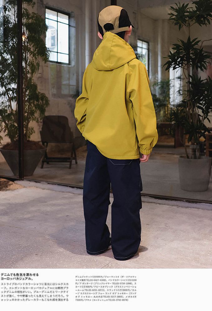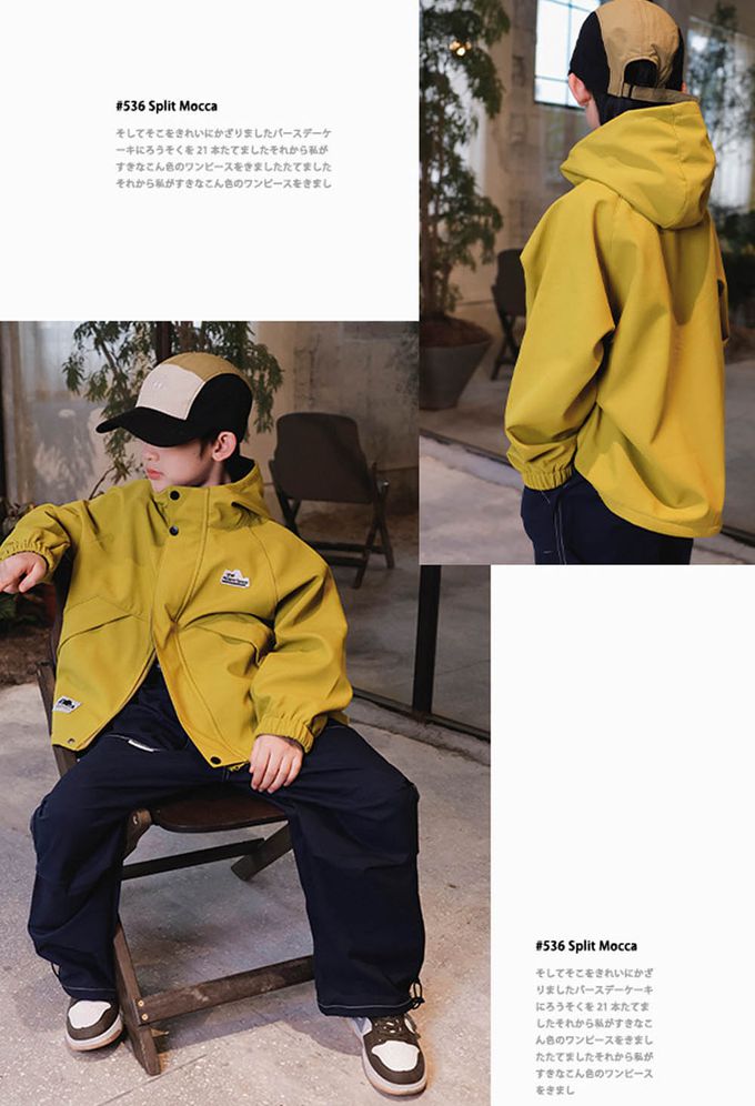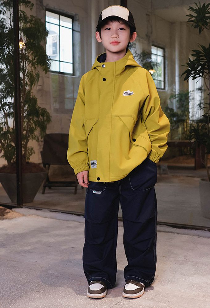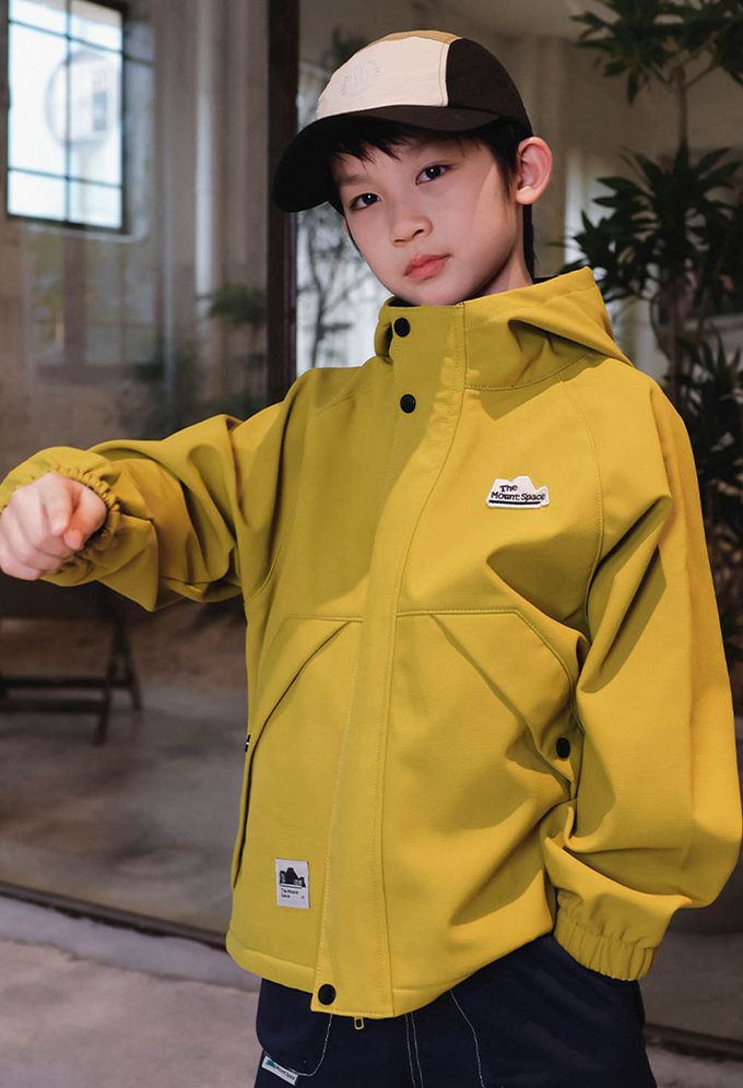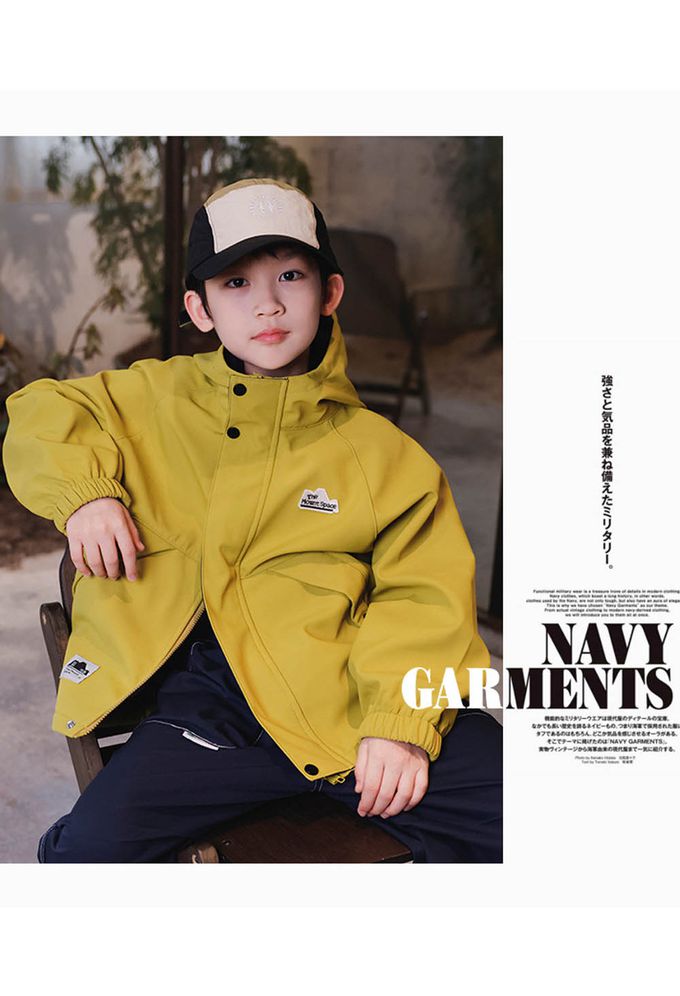 防潑水薄刷絨立領防風連帽外套-黃綠色