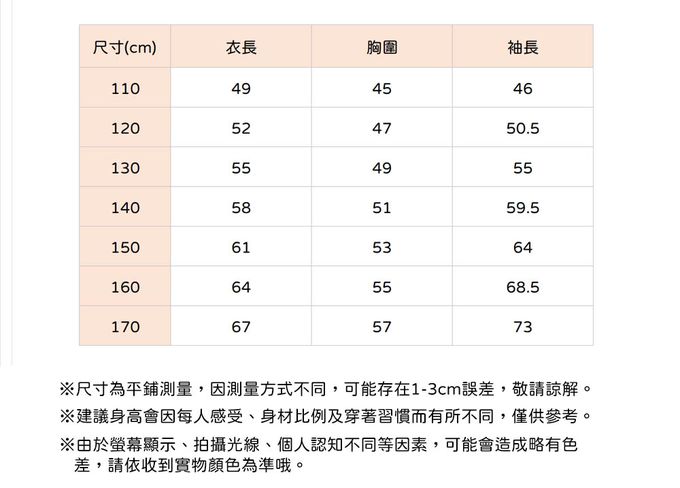 110cm、120cm、130cm、140cm、150cm、160cm、170cm