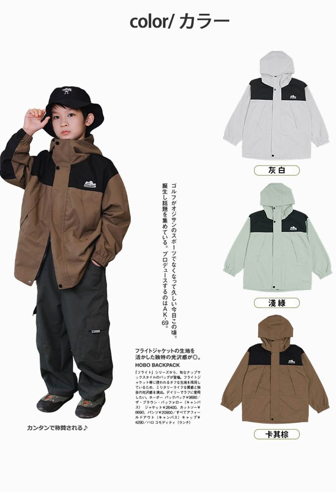Y B S - 防潑水撞色立領防風連帽外套-山系徽章-卡其棕