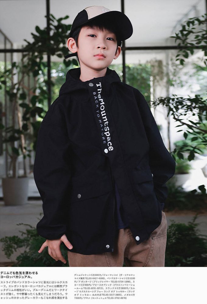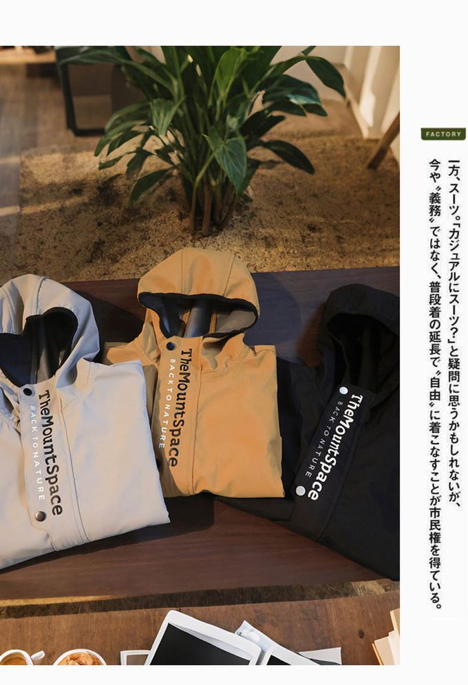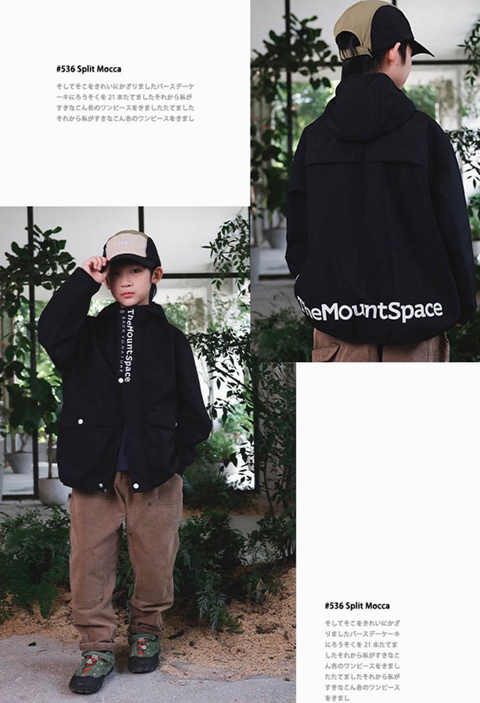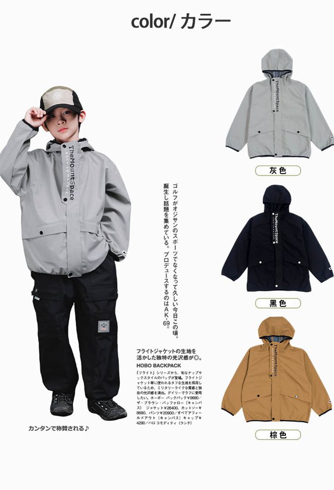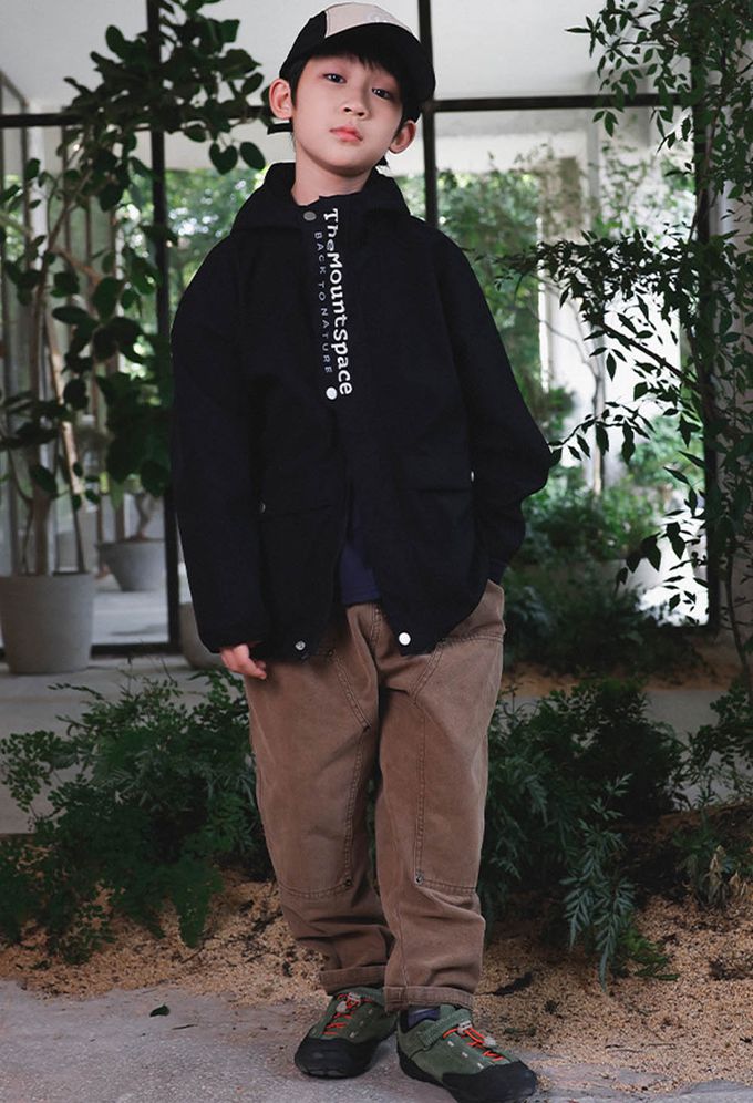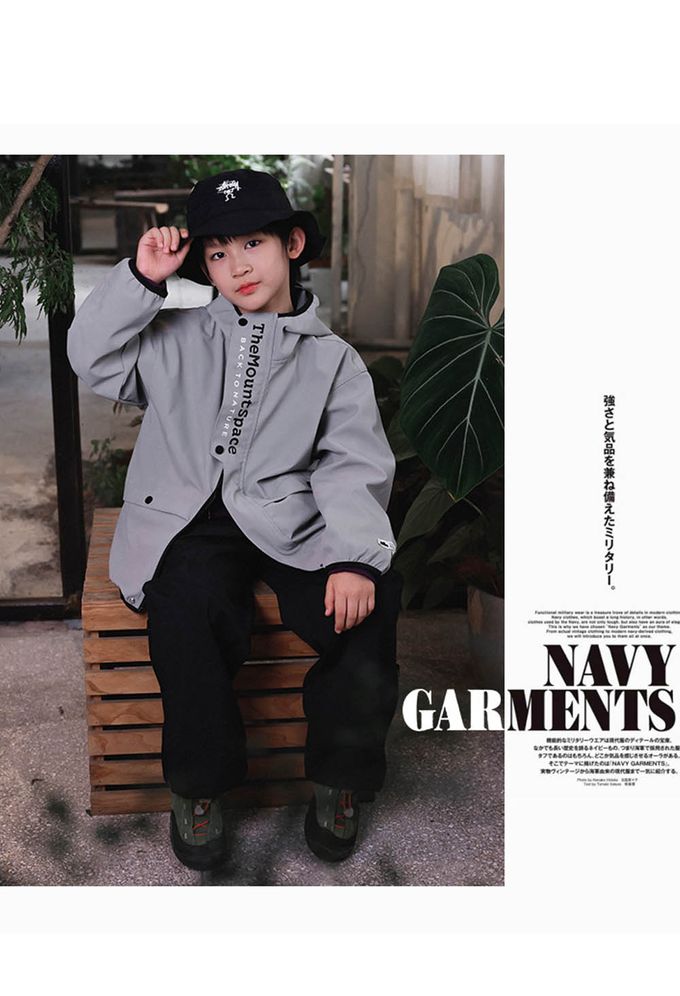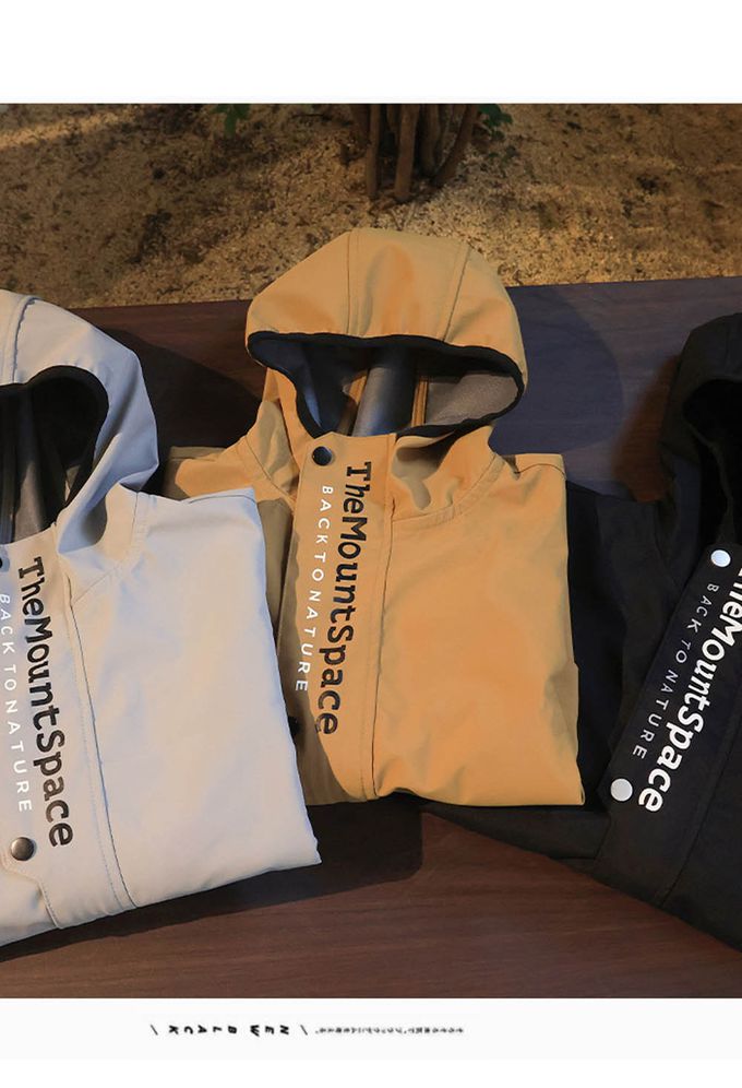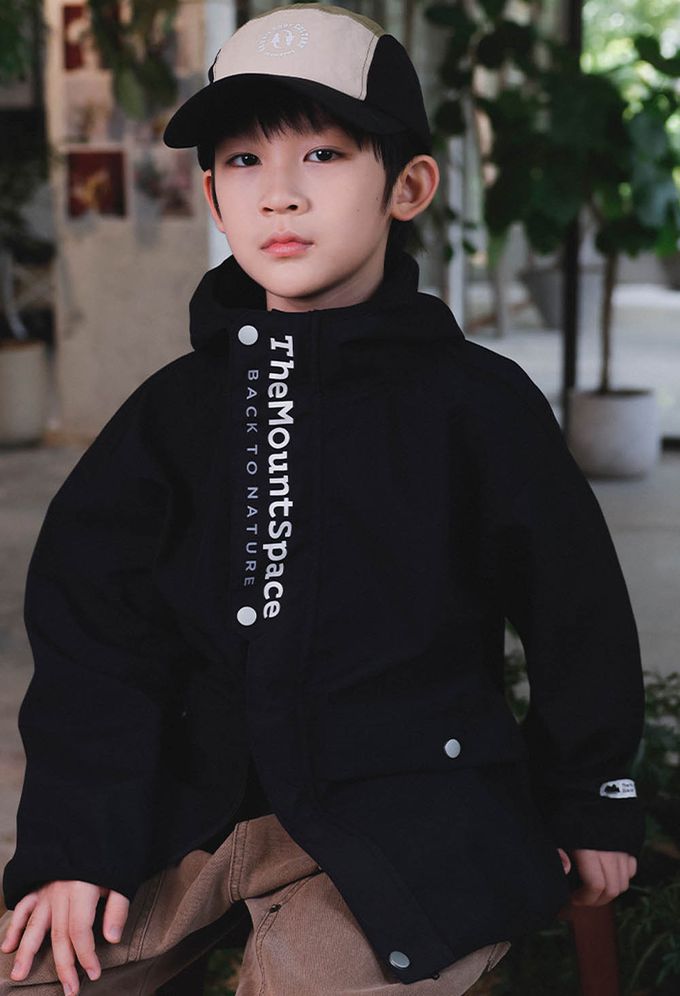 防潑水薄刷絨立領防風連帽外套-文字印花-黑色