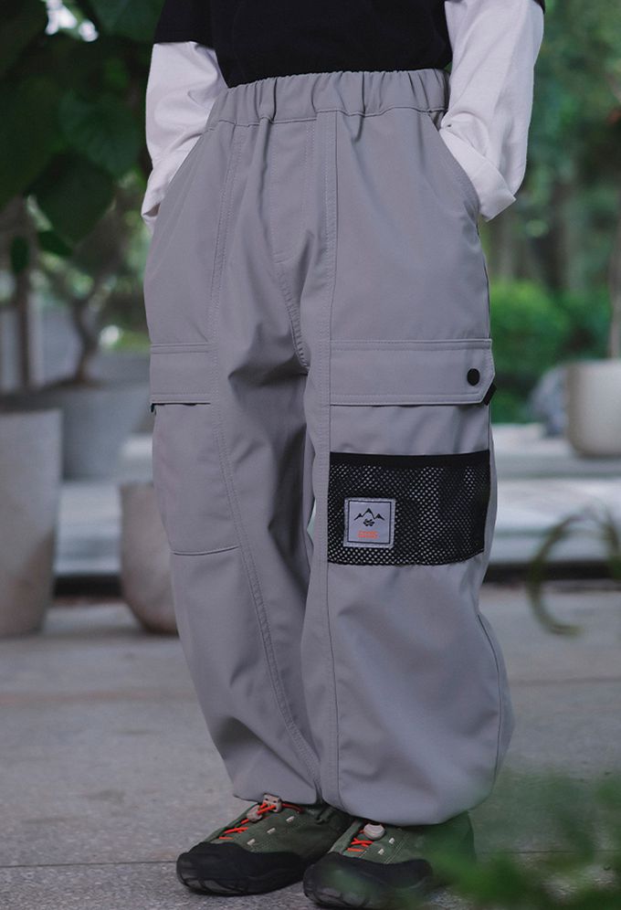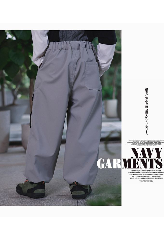 防潑水薄刷絨縮口長褲-個性口袋-灰色