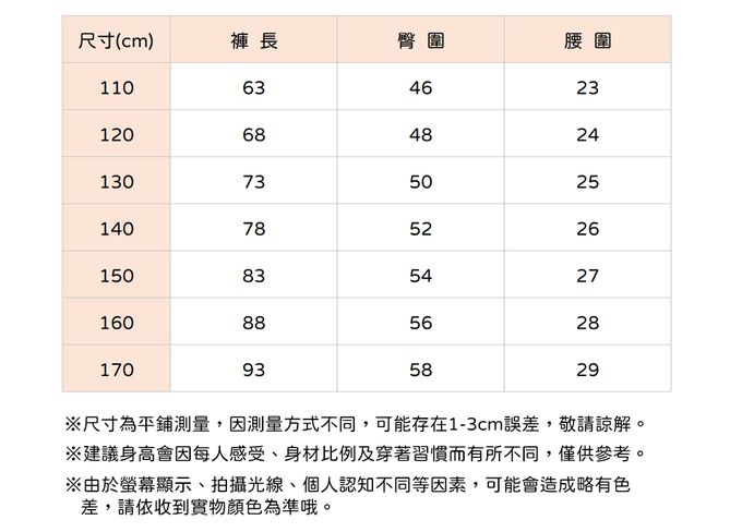 110cm、120cm、130cm、140cm、150cm、160cm、170cm