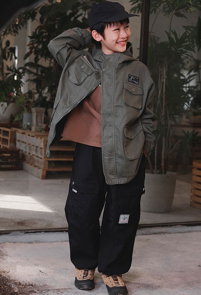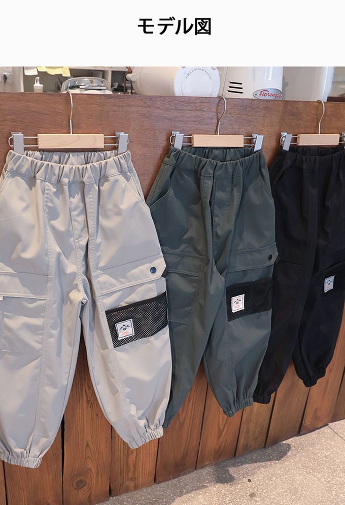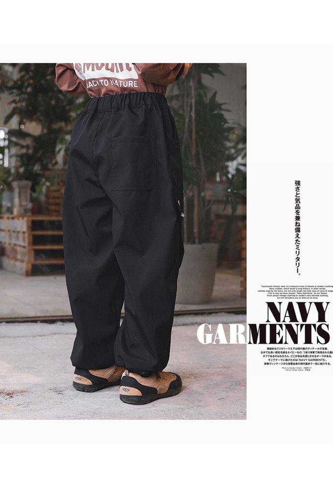 防潑水薄刷絨縮口長褲-個性口袋-黑色
