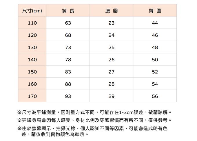 110cm、120cm、130cm、140cm、150cm、160cm、170cm