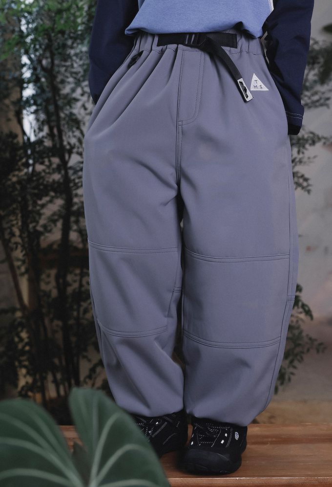薄刷絨腰帶縮口長褲-灰色