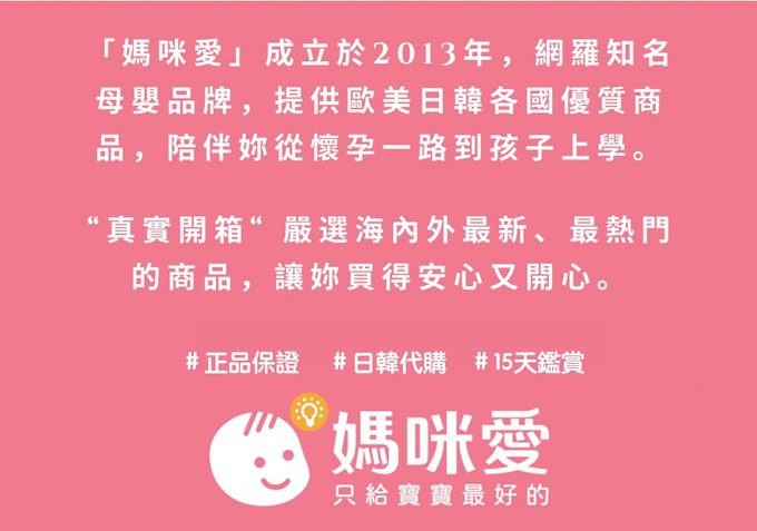 預購商品:預購為海外同步代購,遇缺貨即會通知媽咪並協助取消退款事宜。