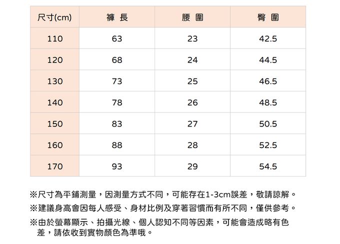 110cm、120cm、130cm、140cm、150cm、160cm、170cm