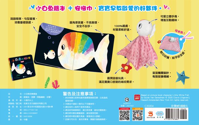 小白魚找媽咪【安撫禮盒】精裝厚頁書+安撫巾玩偶