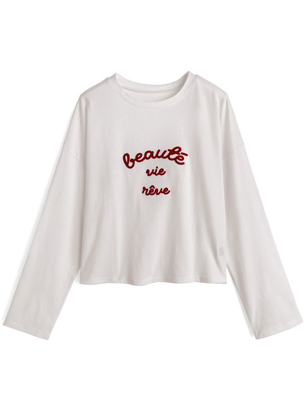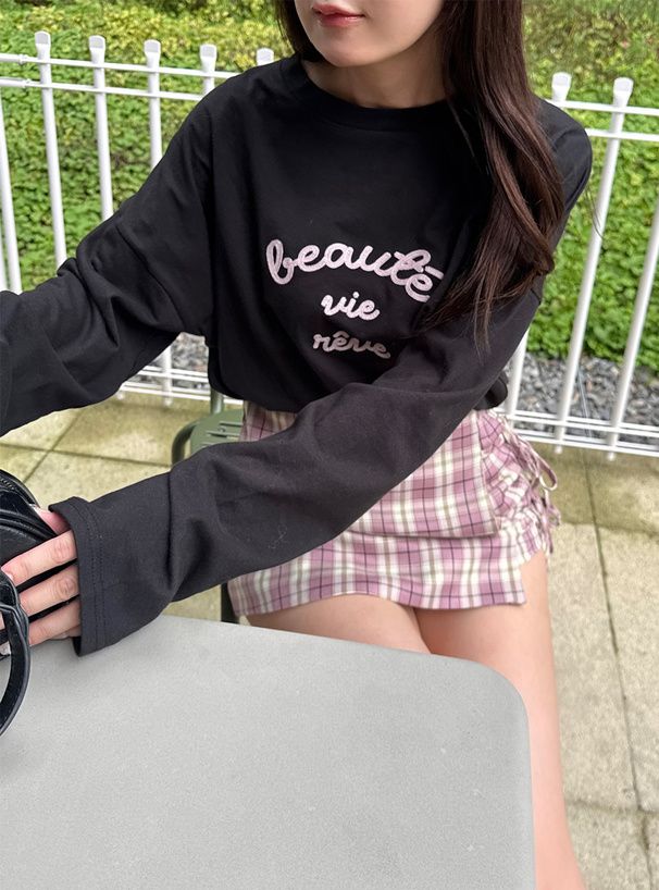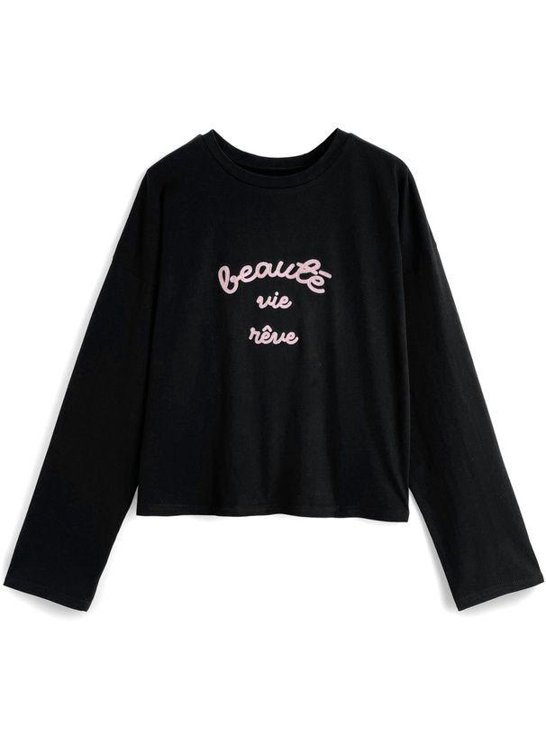 日本 GRL - 簡約文字logo落肩長袖T恤-黑 (F)