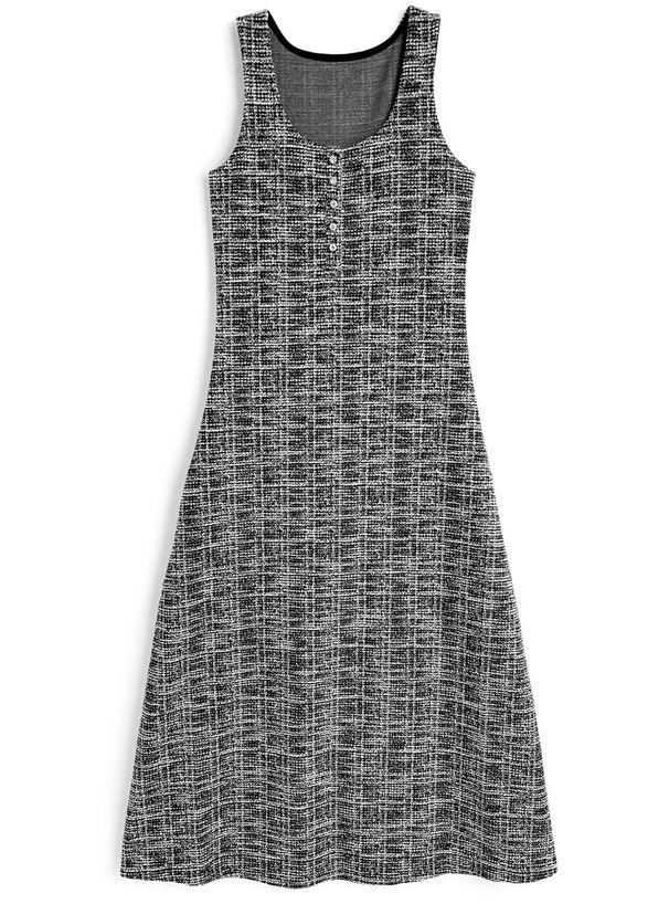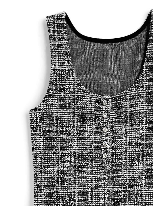 • 品名:粗花呢寶石扣背心喇叭裙長洋裝