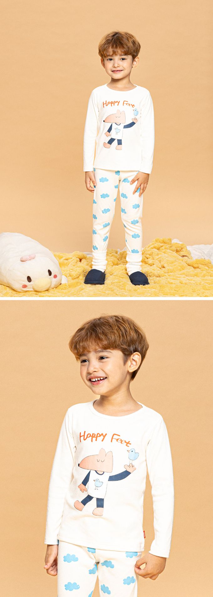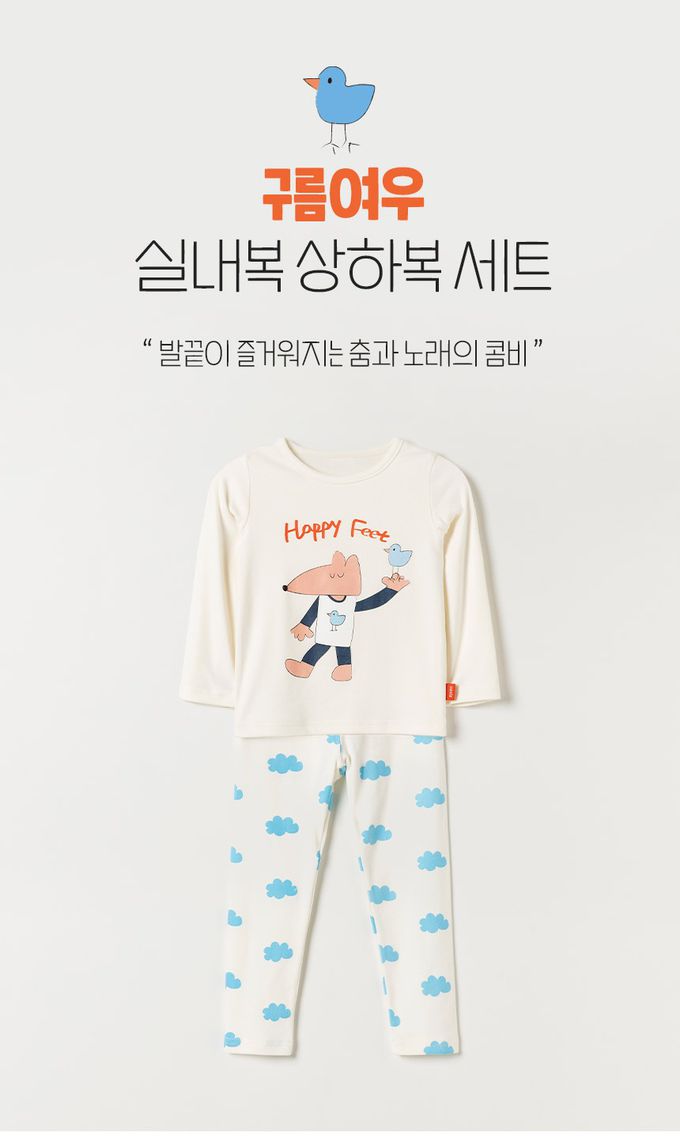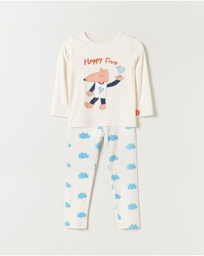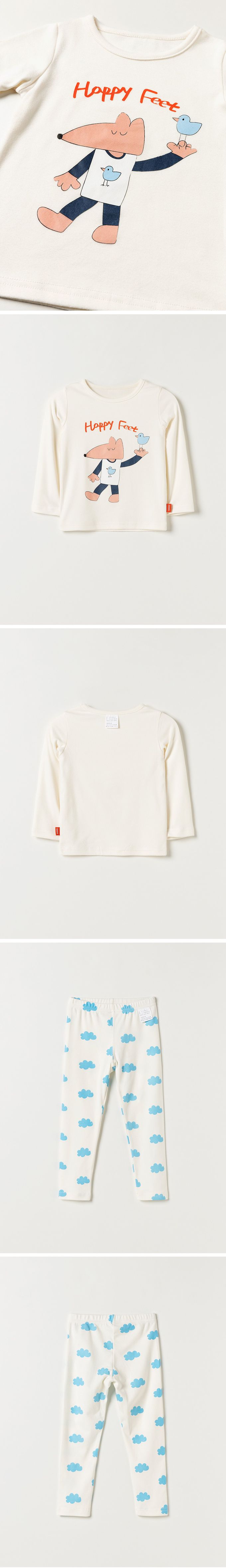 韓國 OZKIZ - 超細絨毛混織彈性長袖家居服-狐狸雲朵-象牙白