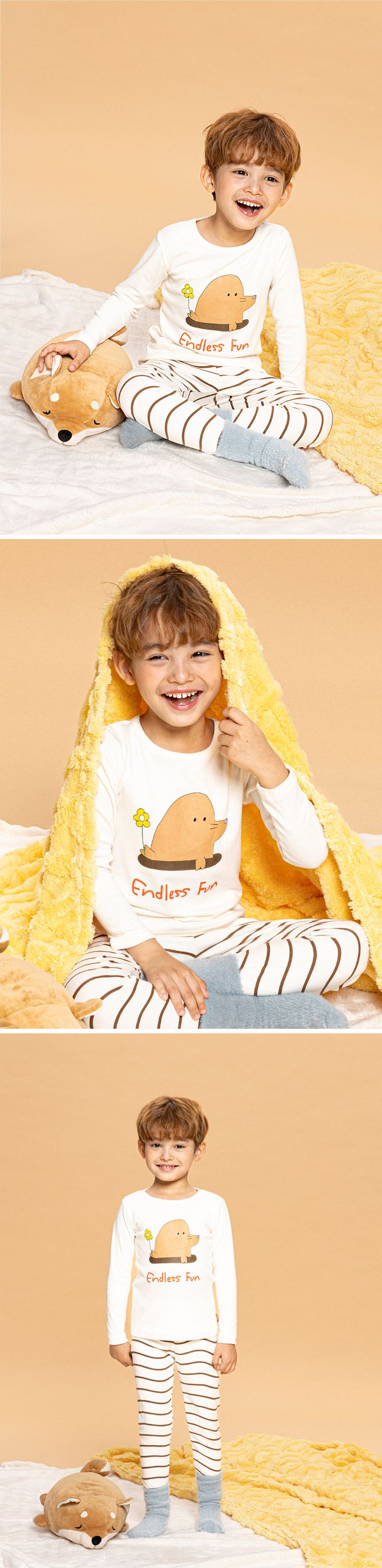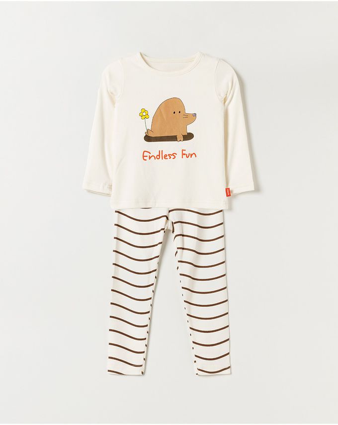 韓國 OZKIZ - 超細絨毛混織彈性長袖家居服-土撥鼠-象牙白