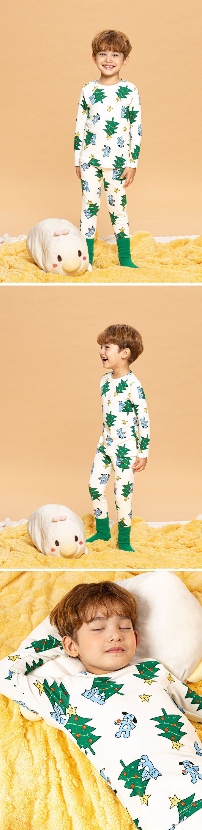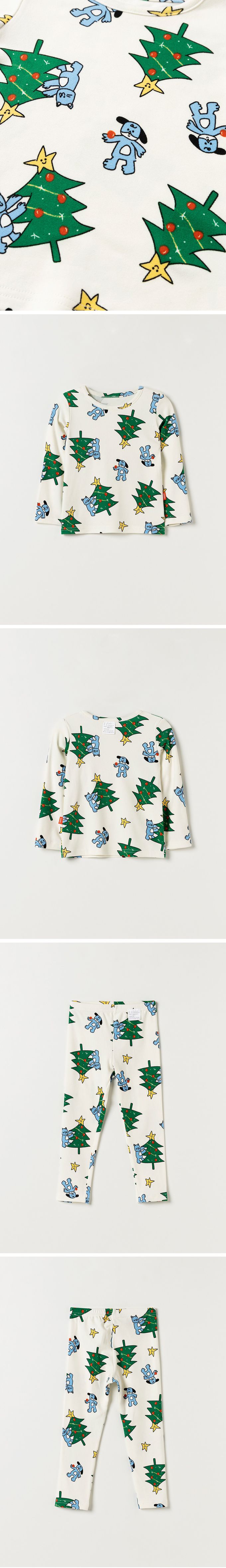 韓國 OZKIZ - 超細絨毛混織彈性長袖家居服-聖誕樹-象牙白