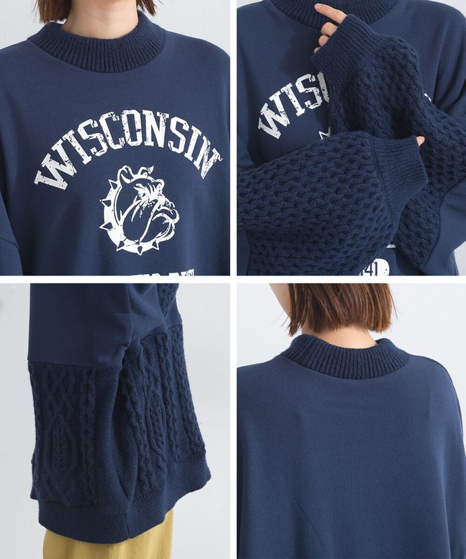 • 品名:鬥牛犬印花粗針織拼接裏毛長袖上衣