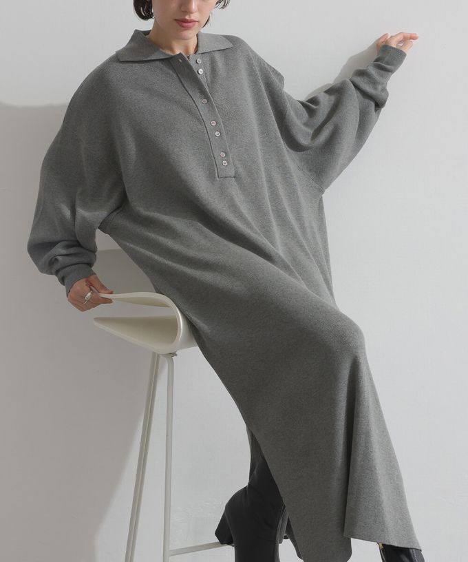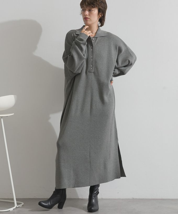 • 品名:氣質排扣polo衫針織長袖洋裝