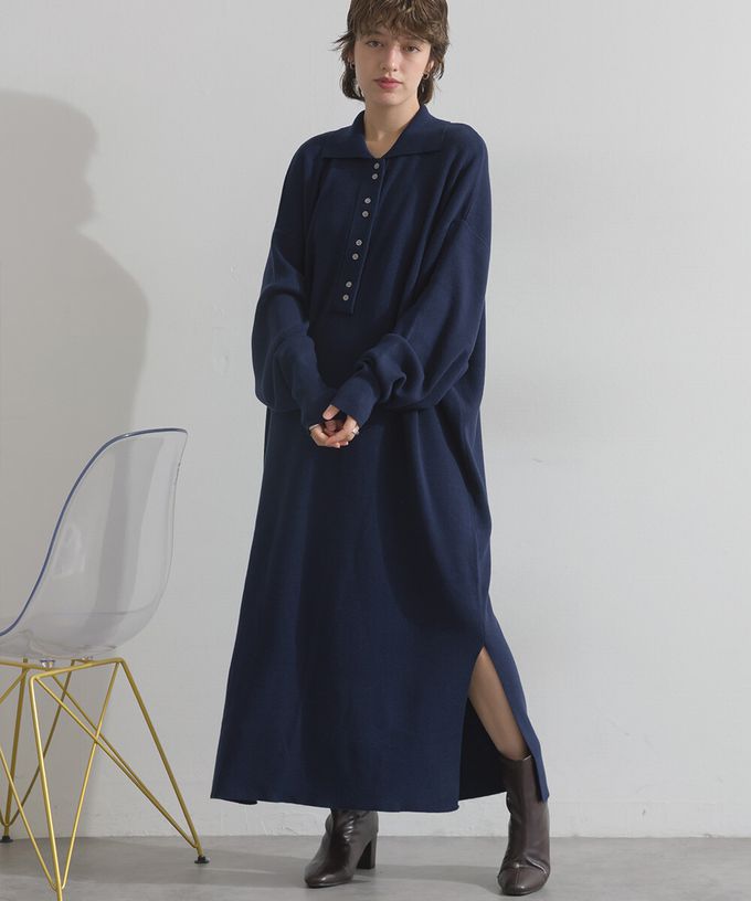 • 品名:氣質排扣polo衫針織長袖洋裝