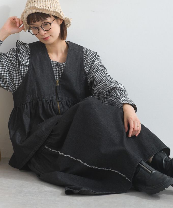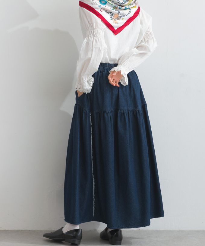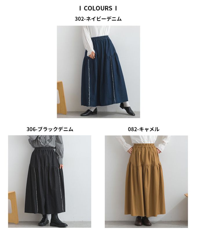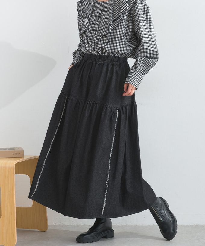 日本 Lupilien - 厚磅立體感線條澎澎長裙(附口袋)-黑色丹寧